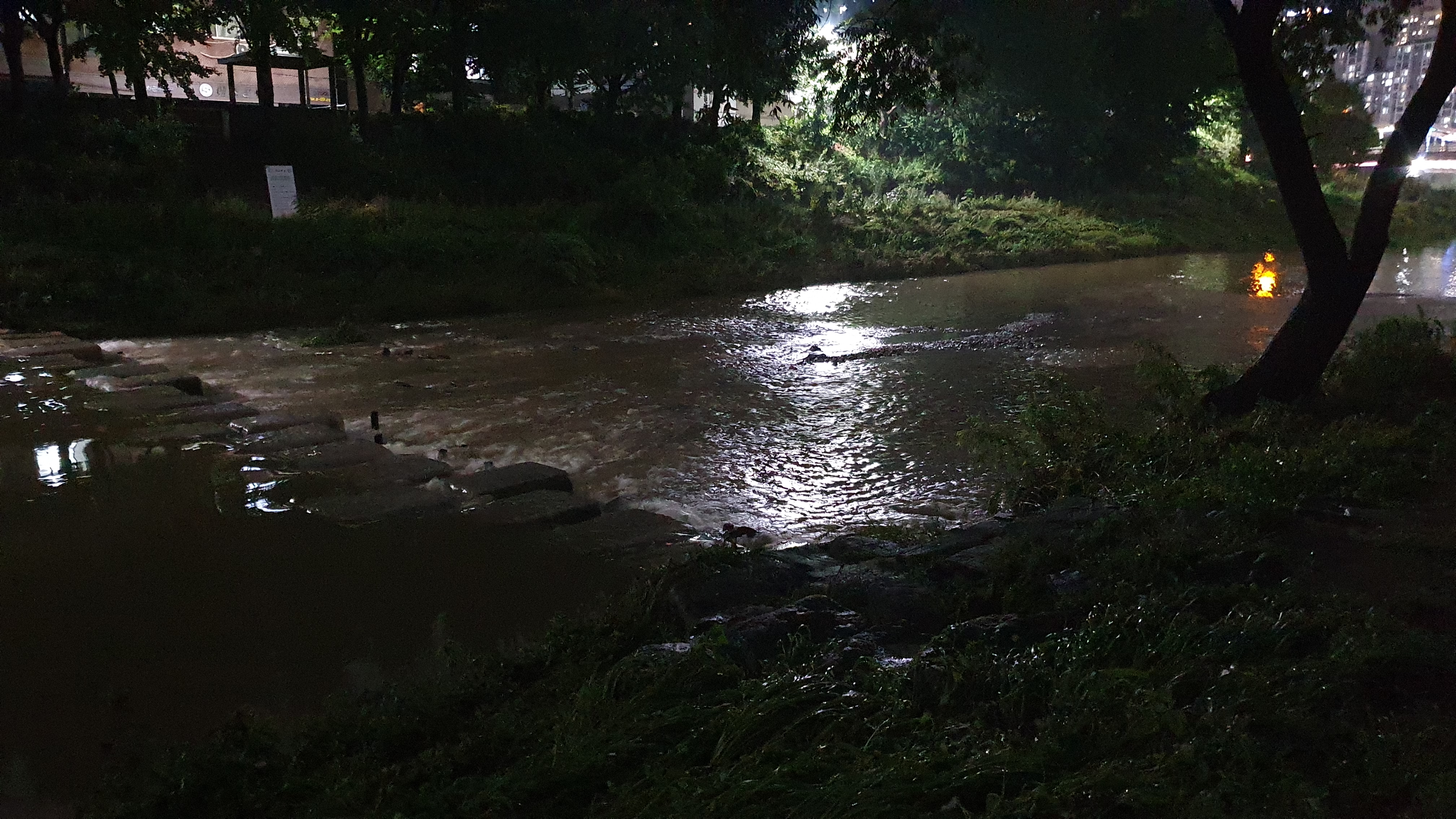 2023.07.11/ #도시기록 #안양천 / 전파교-서로교-덕천교-쌍개울 구간 안양천 동로에서 본 밤풍경. 밤은 밤답게 적당히 어두워야 한다. 그레야 동식물들도 그들만의 시간을 갖지 않을까 싶다.