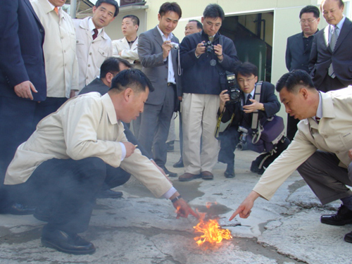 국방부청사 앞 유출기름 화염과 시민단체 퍼포먼스