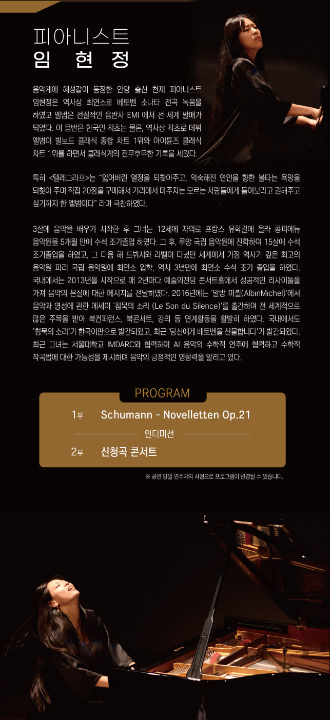 안양문화예술재단이 안양시 승격 50주년을 맞이해 ‘안양을 빛낸 아티스트’ 시리즈 첫 번째 공연으로 세계적인 피아니스트 임현정 초청공연을 지난 4월 9일 오후4시 평촌아트홀에서 선보였다.