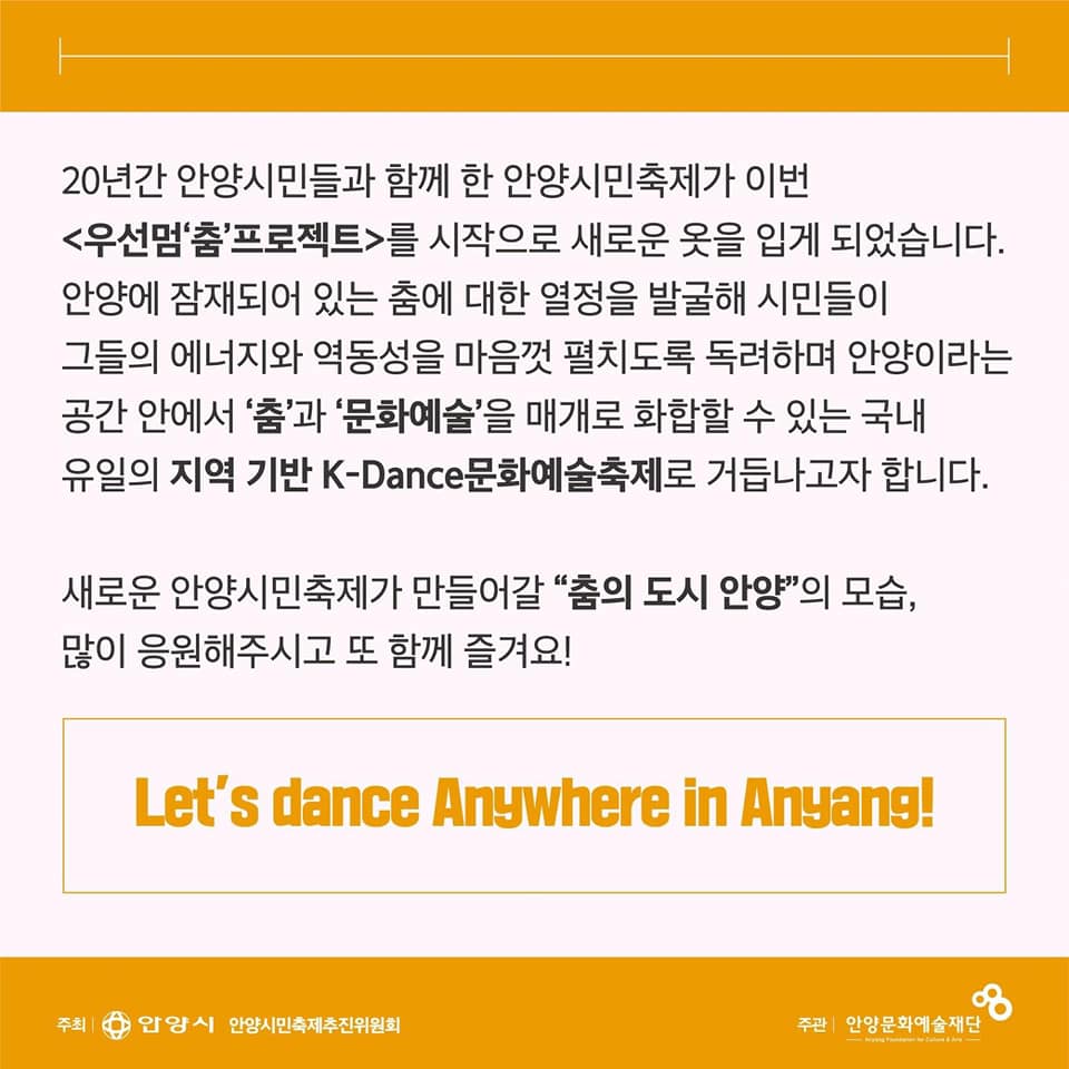 특히 2020년 개최된 안양시민축제_우선멈춤을 시작으로 안양축제가 춤을 테마로 춤의 도시 안양 축제가 펼쳐 질수있도록 모티브를 제공한 인물이다.