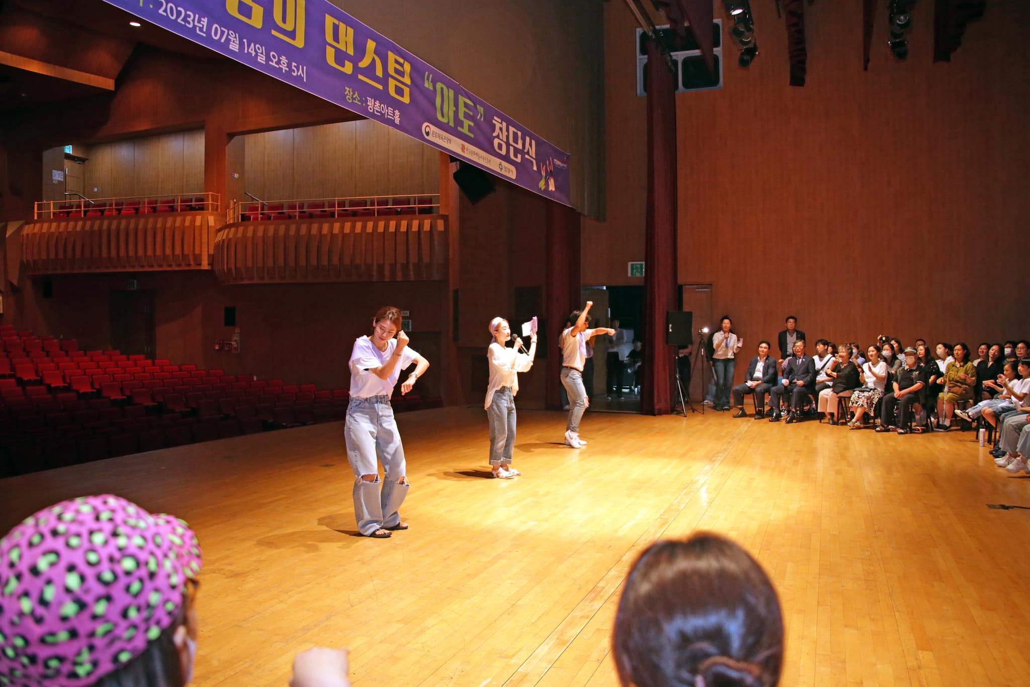 안양문화예술재단이 문화체육관광부에서 지원하고 한국문화예술교육진흥원에서 주관하는 <꿈의 댄스팀> 공모사업에 선정되어 7월 14일 오후5시 안양 평촌아트홀에서 "2023 꿈의 댄스팀 <아토>" 창단식을 진행했다.