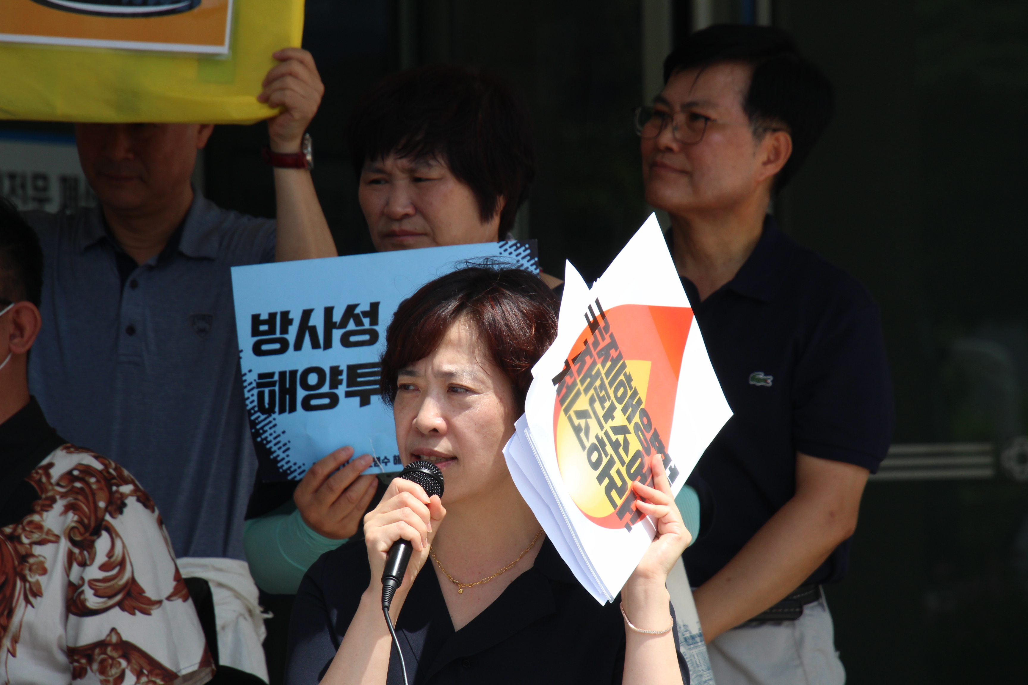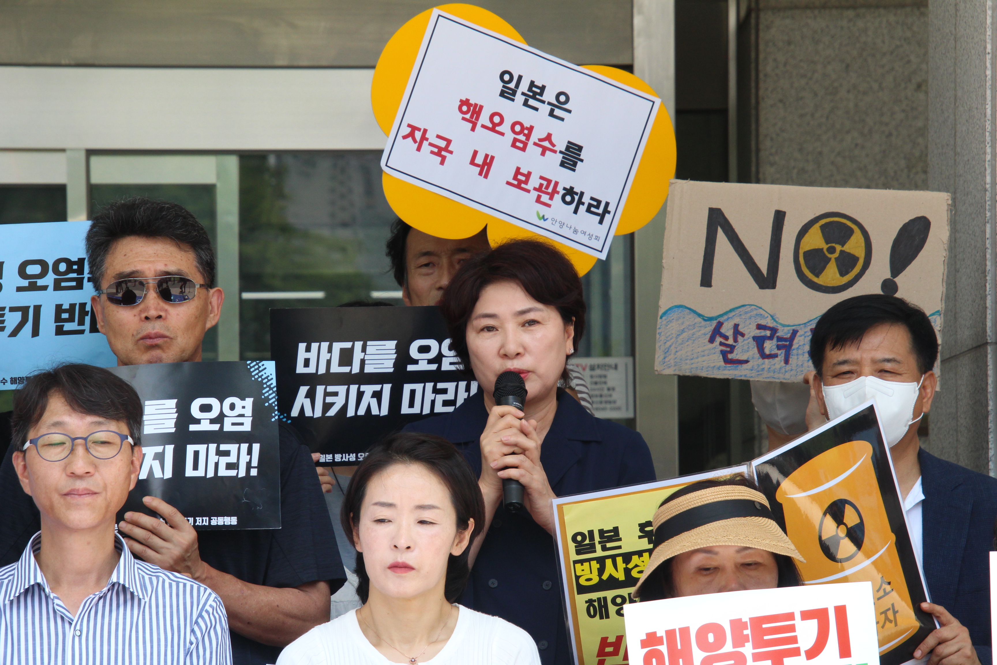 또한 일본정부나 도쿄전력이 이를 강행한다 하더라도 가장 가까이에 살고 있는 대한민국정부가 이를 오히려 옹호하고 있다며, 현 정부는 누구를 위해 존재하느냐 되물었다. 다종다양한 해산물을 즐겨먹는 한국인의 특성상 원전 오염수 투기는 국민건강에 지대한 영향을 끼칠텐데 국가가 의무를 저버리고 도쿄전력 편에 서고 있다고 비난했다.