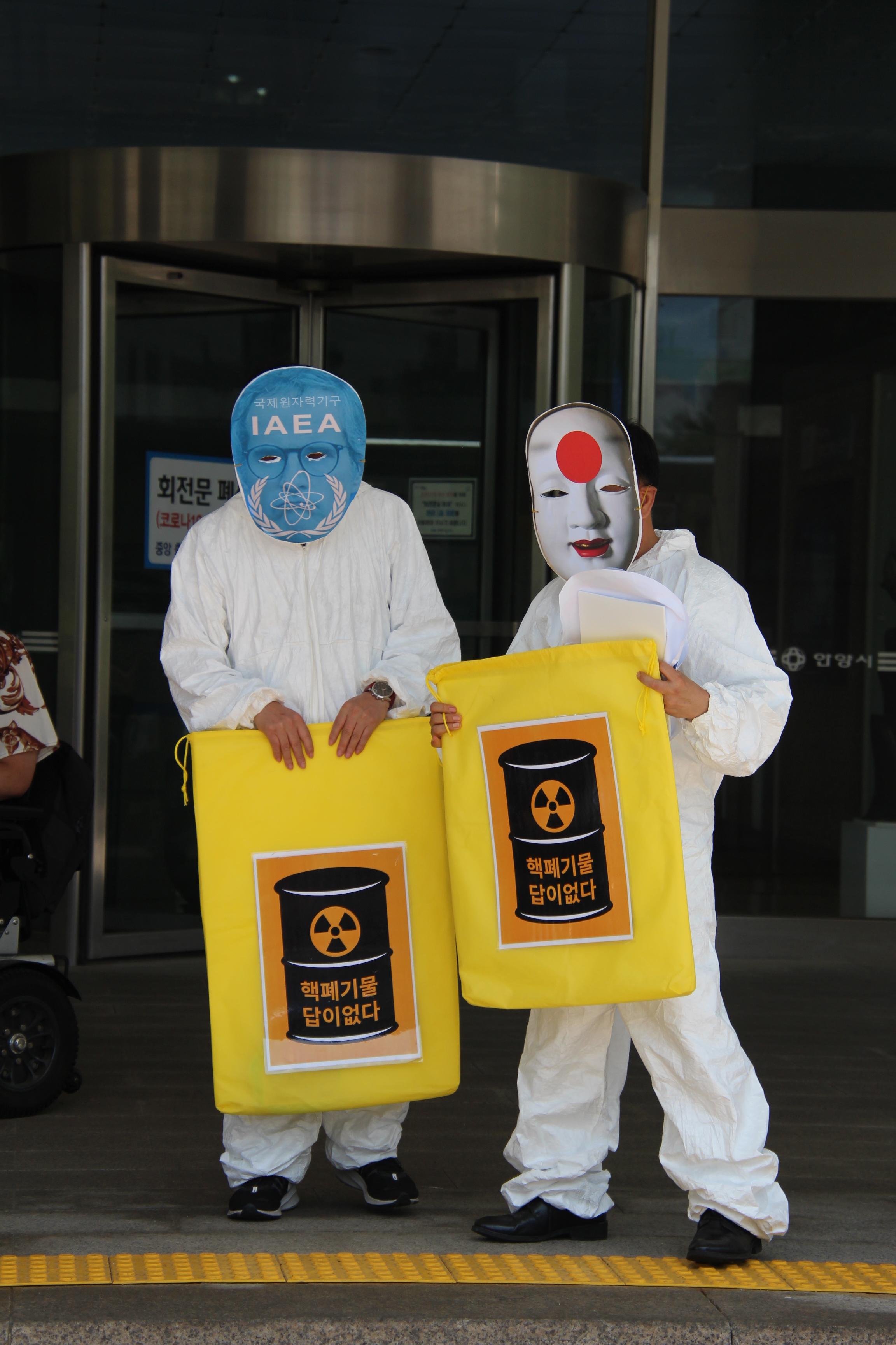 이날 퍼포먼스는 후쿠시마 오염수를 방류하기로 한 일본정부와 도쿄전력, 또한 사실상 이를 승인한 한국정부와 국제IAEA에 대한 항의 표현이다.