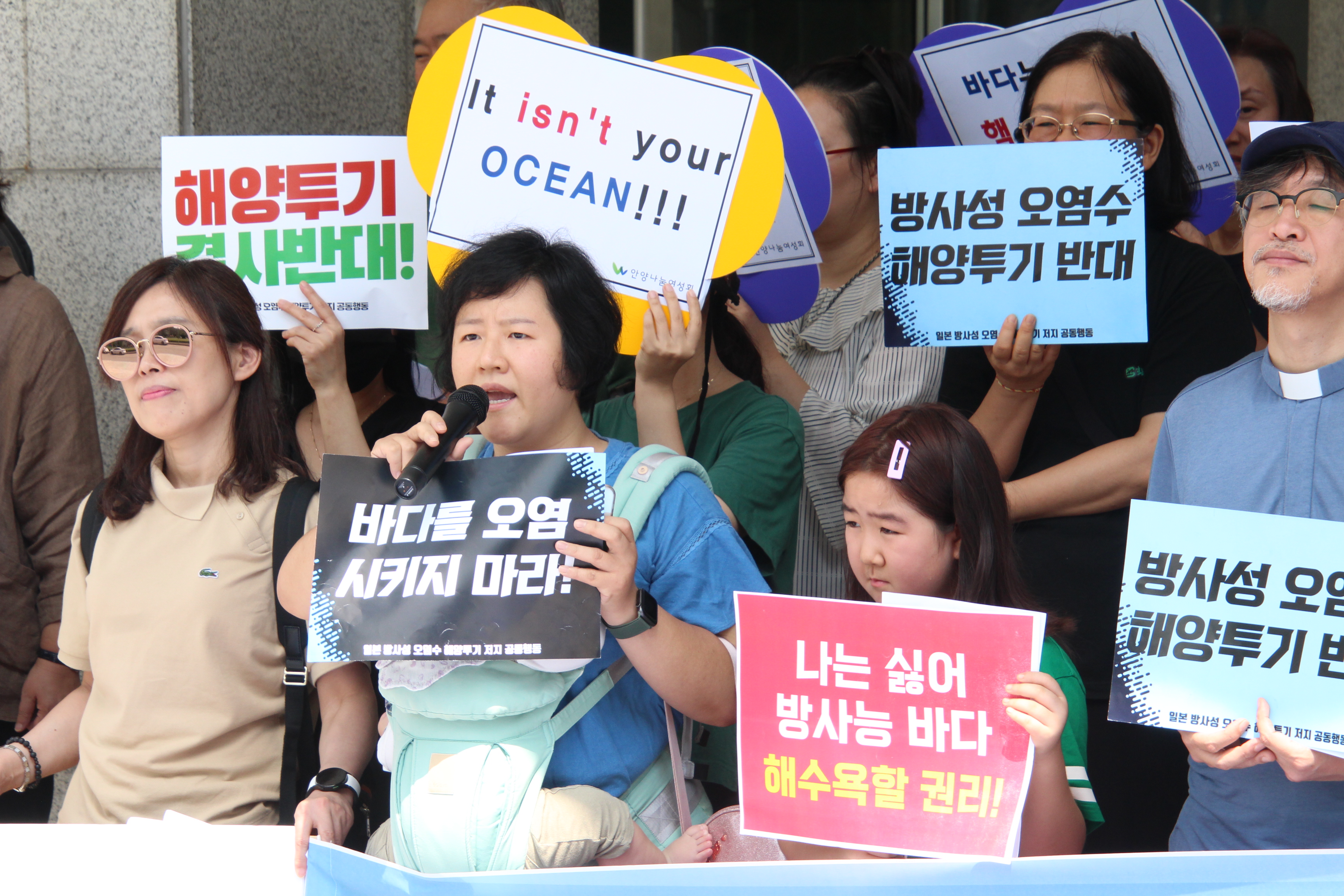 안녕하세요. 저는 아이 둘을 키우고 있는 엄마입니다. 안양군포의왕환경운동연합에서 활동하고 있고요. 지금은 육아휴직 중인데 도저히 집에만 있을 수가 없어서 이제 9개월 된 아기를 안고 나왔습니다.