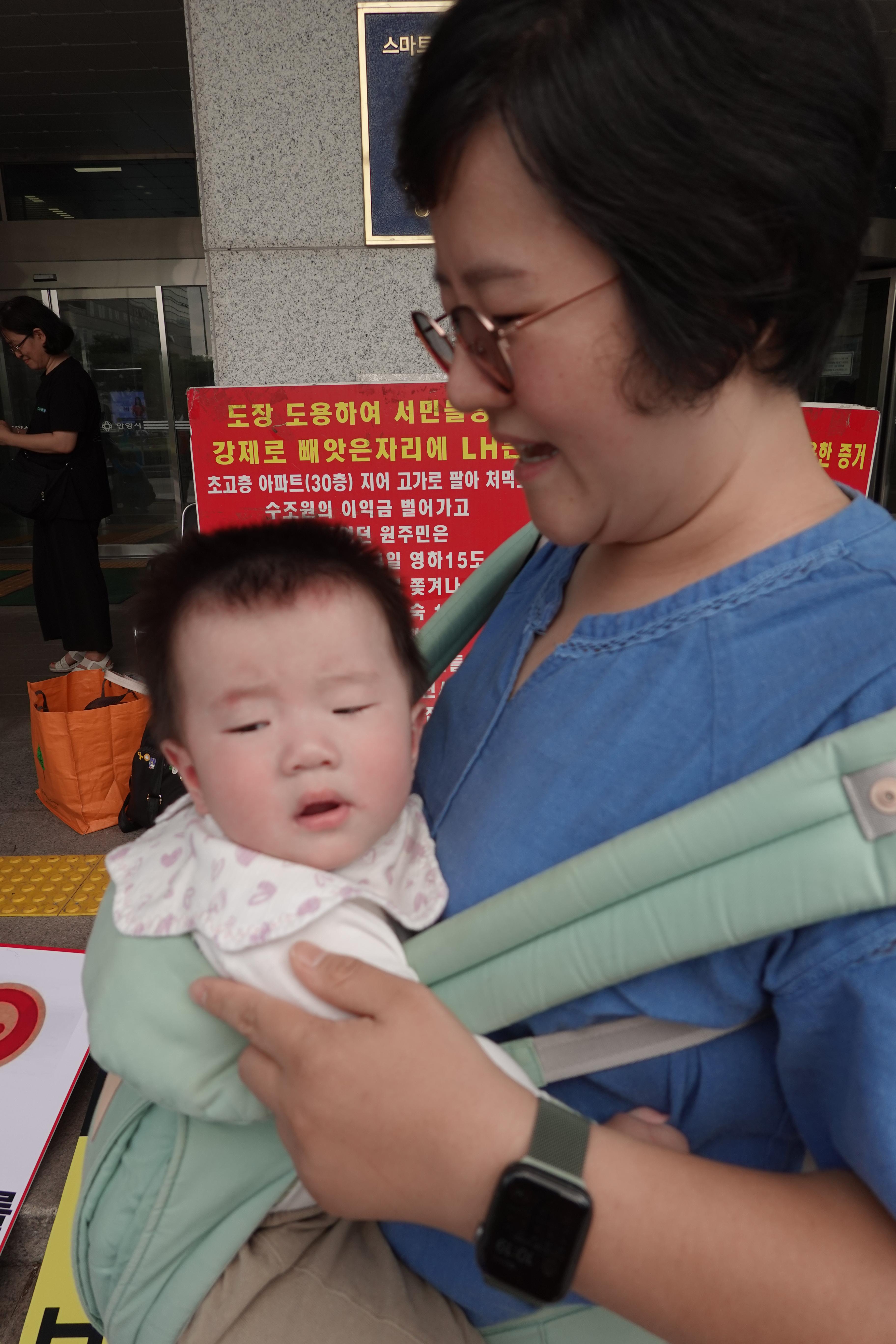 안녕하세요. 저는 아이 둘을 키우고 있는 엄마입니다. 안양군포의왕환경운동연합에서 활동하고 있고요. 지금은 육아휴직 중인데 도저히 집에만 있을 수가 없어서 이제 9개월 된 아기를 안고 나왔습니다.