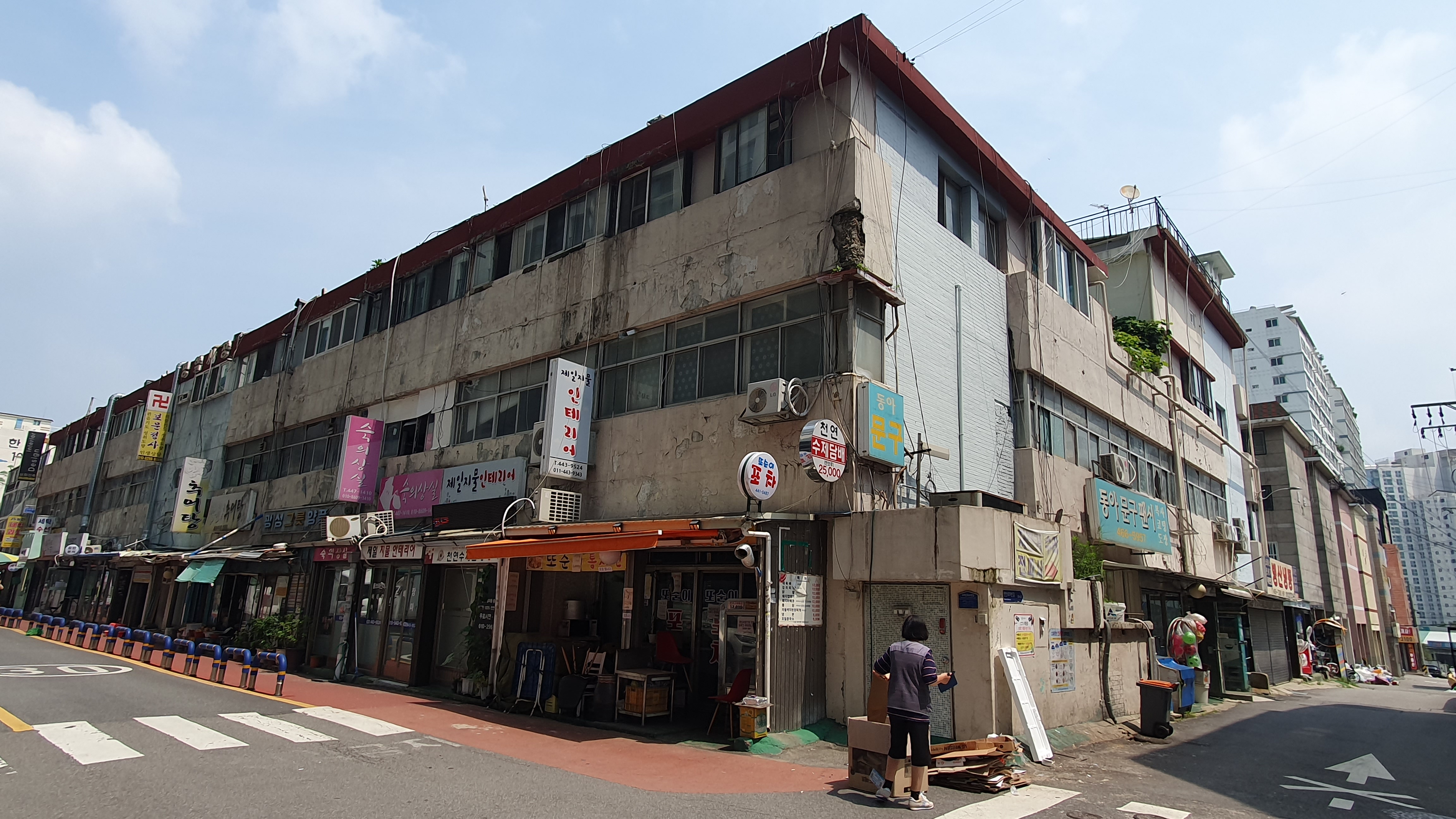 2023.07.20/ #도시기록 #명학시장 #안양 #동네 #골목 #상가 #안양6동/ 1978년에 문을 연 명학시장. 개장 당시에는 입주자 모집 신문광고까지 냇던 곳이댜. 시간이 흐르며 낙후돼 오래전부터 재개발이 추진되어 왓으나 지분이 이리저리 쪼개지고 니뉘어져 권리자가 매우 많아 그도 쉽지않은 상황이다. 아이러니하게도 건물앞 정부 공공기관 세곳이 이전하고 그자리애 오피스텔 이 듷어선후 배후 상권으로 다시 홯력을 찾고있다.