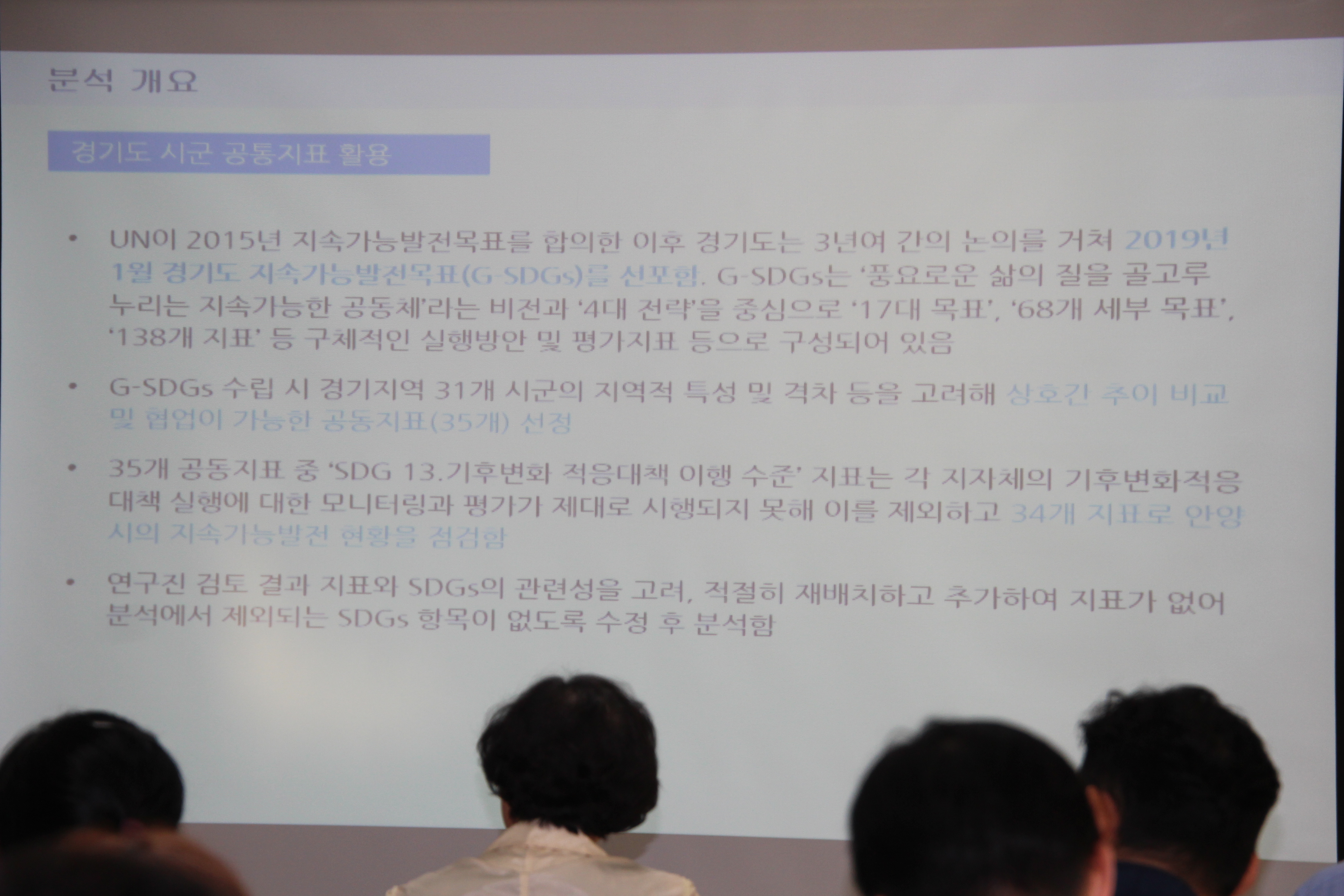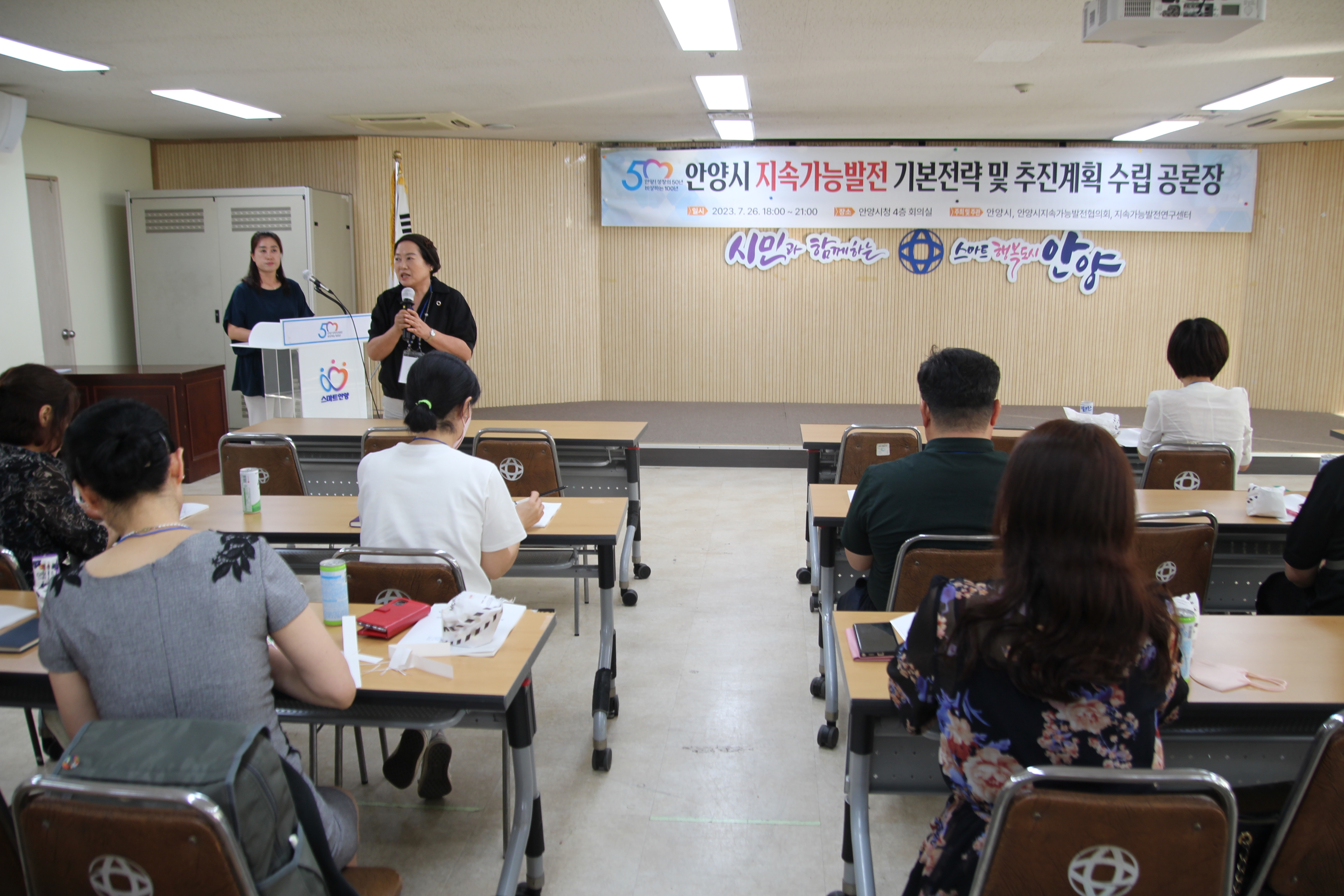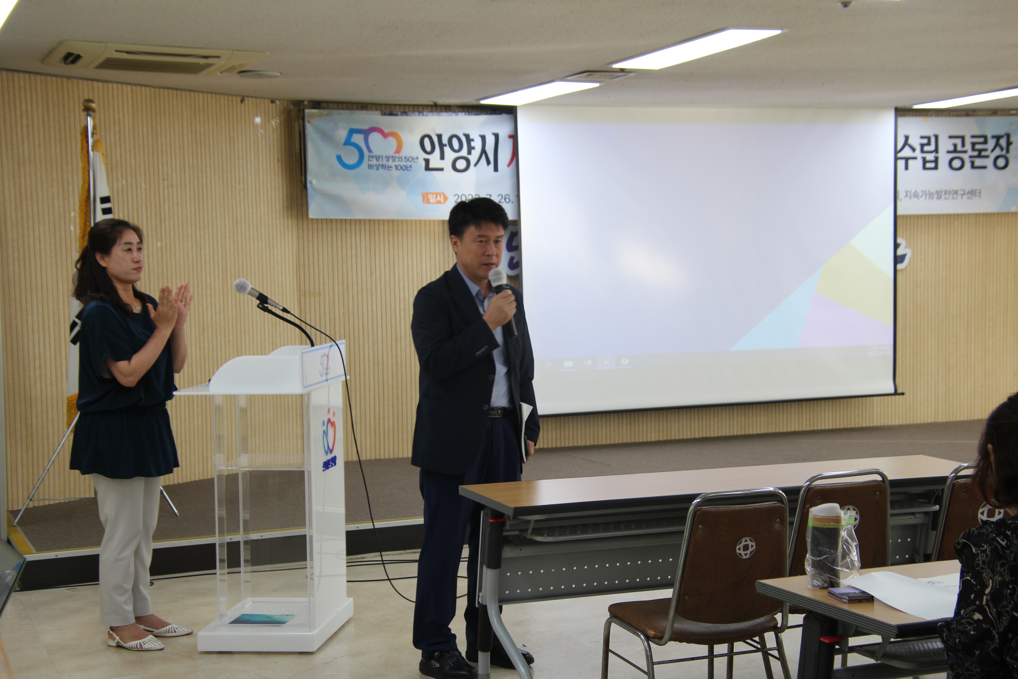 안양시 연구용역을 맡은 지속가능발전연구센터 주관으로 열린 이날 공론장은 안양시지속가능발전협의회 양속정 상임회장과 안양시 김대희 정책기획과장의 인사말에 이어 안양시민을 대상으로 실시한 설문조사 결과 분석, 안양시 지속가능발전 현황(경기SD 시군공통지표 분석) 설명이 있었다..