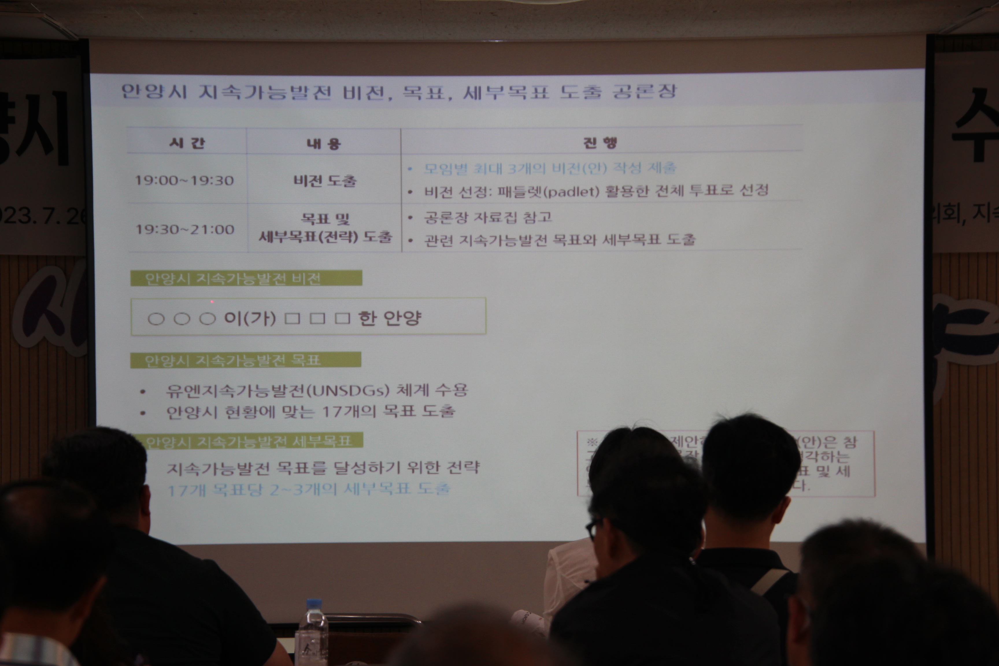 안양시청 4층 대회의실에서 열린 이날 공론장에는 안양시지속가능발전협의회 위원, 시민단체 실무자들, 사회 각 분야 전문가, 안양시 홈페이지 공고를 보고 신청한 일반 시민 등 120 여명이 참석한 가운데 오후6시부터 9시까지 진행됐다.