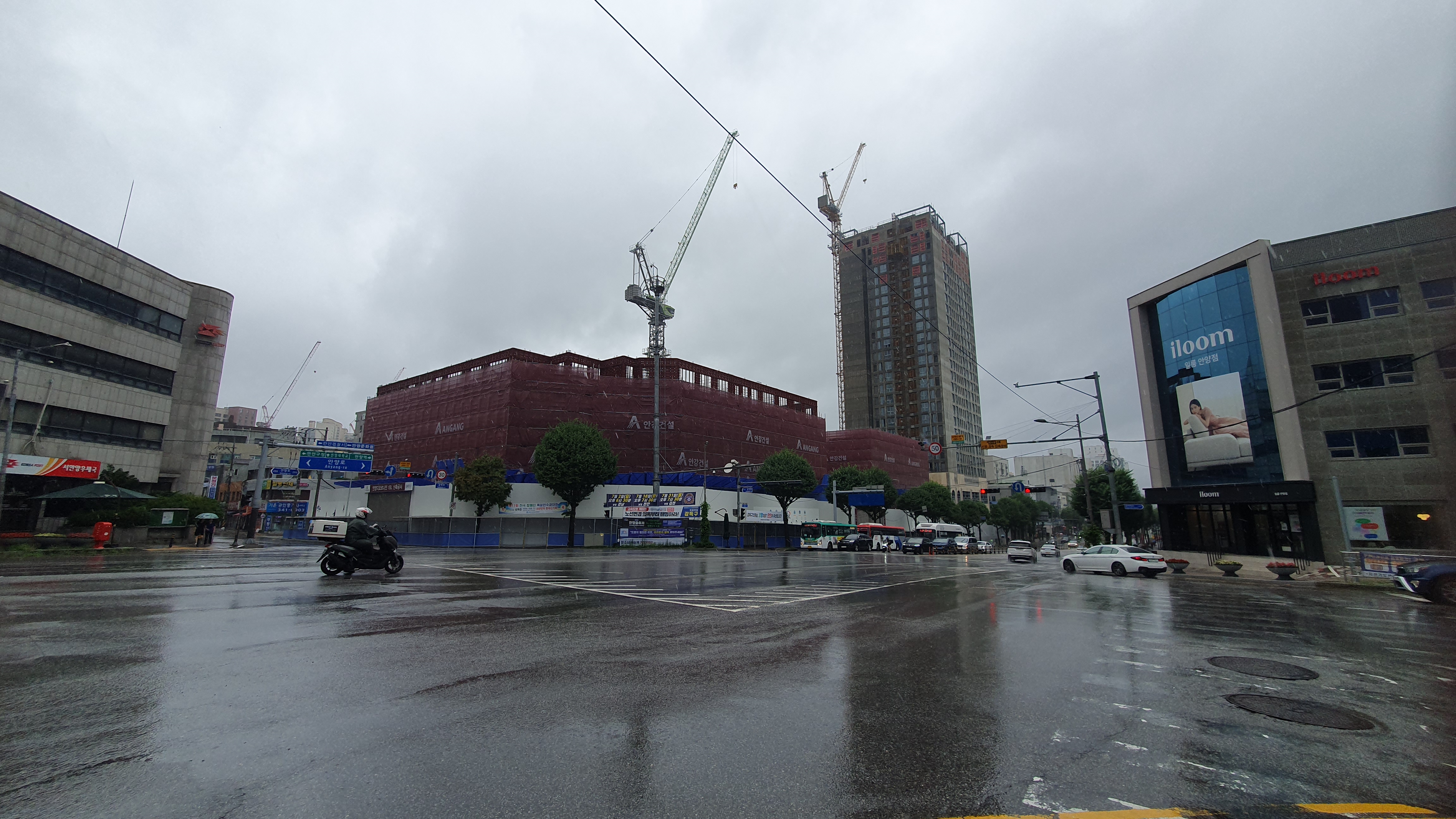 2023.07.23/ #도시기록 #안양5동 #안양 #동네 #골목 #결혼회관 #안양5동 #재건축 #우체국사거리/ 안양5동 우체국사거리라 불리우는곳. 결혼회관이 있던 자리에 신축공사가 한창이다.. 오른쪽에는 건물이 다 을라갔고 왼쪽에는 신축 공사가 한창이다. 결혼회관(포시즌코리아웨딩홀)은 수많은 결혼식이 이루어졌던으로 결혼회관이 들어서기 전인 1960-70년대에는 포도밭이 있었다. 이 자리에는 25층의 주상복합(판테온 디오르나인) 3개동이 들어설 예정이다.