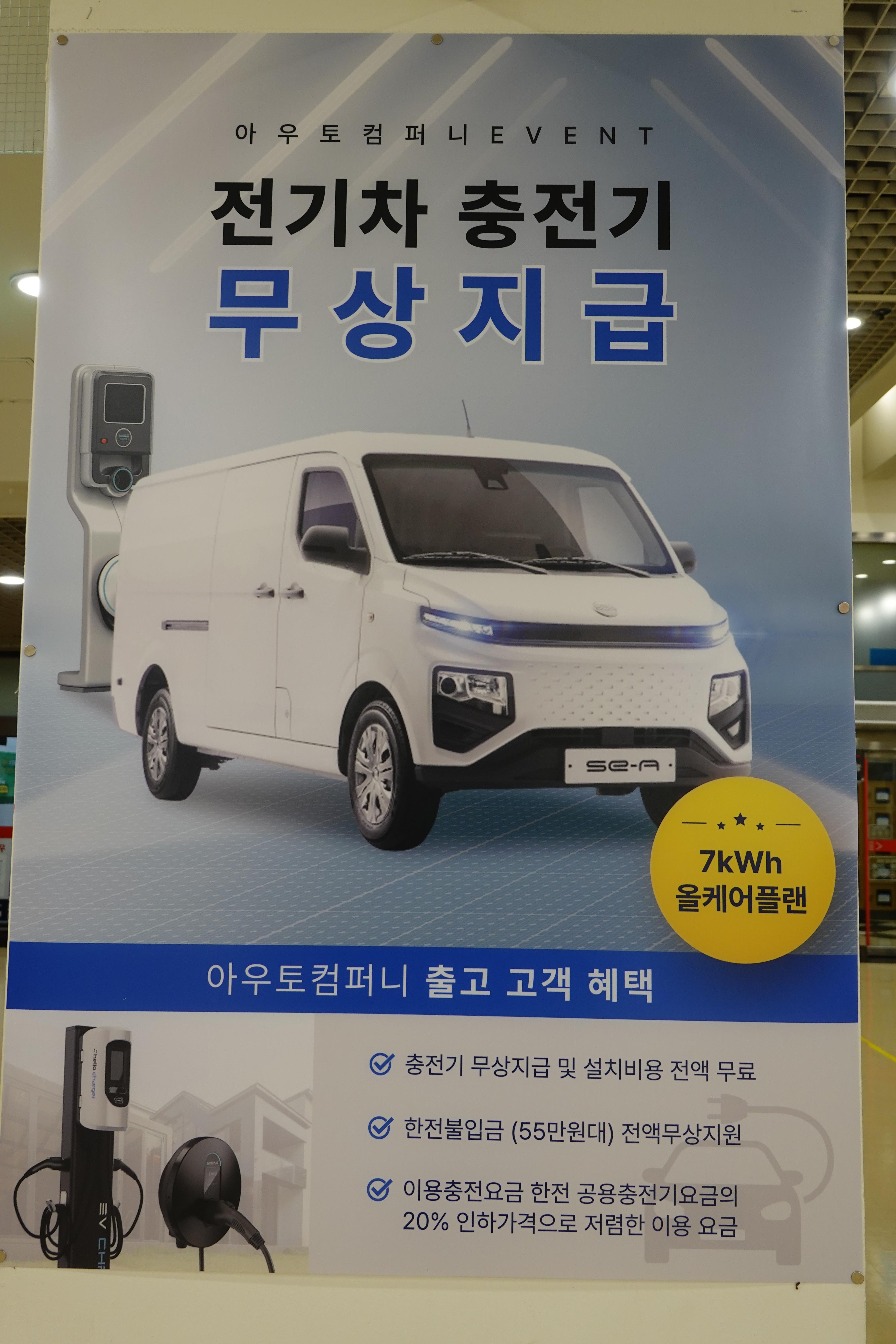 2023.07.29/ #마켓 #홈플러스 #자동차/ 홈플러스 호계점에 오랫만에 갔더니 자동차를 판매한다. 전기화물밴이 각종 혜택을 받아 실구매가가 약 1460만원이란다. 중국 대형마트에서 자동차와 오토바이를 판매하는걸 보았지만 한국 대형마트에서 자동차 판메를 보기는 처음이다.