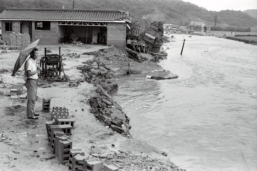 2023.07.30/ #아카이브 #옛사진 #기록 #기억 #안양대홍수 #77수해/ 1977년 안양대홍수 당시 사진으로 경기도청 자료실에서 발견한 현장 기록물이다. 1977년 7월 8-9일 이툴간 안양에 내린 비는 무려 467.2mm로 기상청 창설이래 최대의 강우량을 기록하면서 이재민 6만명에 사망, 실종자 288명이라는 엄청난 인명피해를 입혀 안양 대홍수 또는 77년 대홍수라 블려지며 안양시의 첫번째 아픔으로 손꼽는 사건이다. 당시 안양시내 전역이 물에 짐기고, 안양천 모든 다리가 끊기고, 안양철교 교각이 주저앉아 경부선 철도가 수일간 운행하지 못했다.