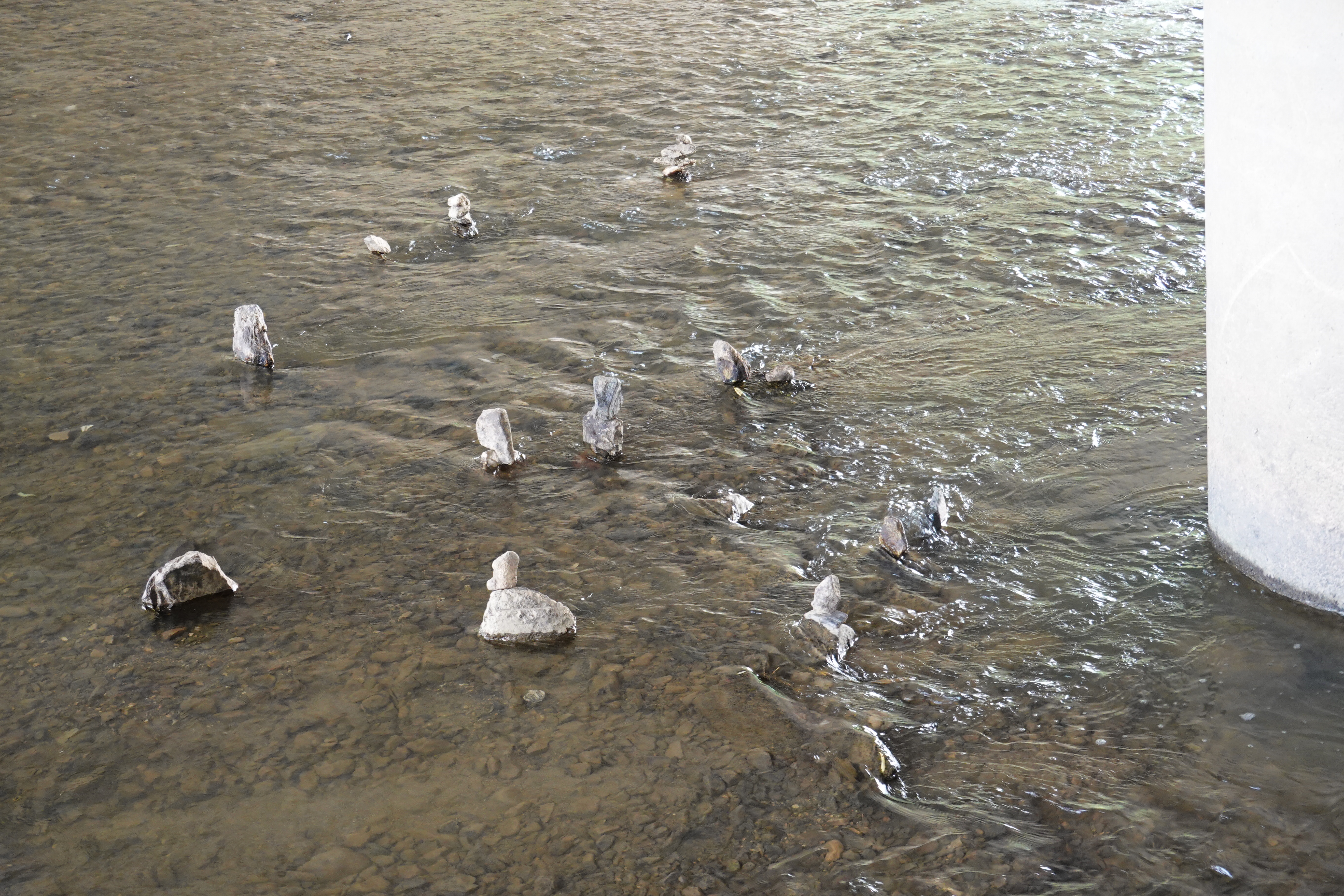 2023.07.20/ #중심잡기 #돌세우기 #설치예술 #안양 #학의천 #내비산교/안양학의천 내비산교 다리 아래 들위에 돌을 세워놓은 모습을 만났다. 균형잡기 또는 증심잡기인데. 일반인이 저 정도 하기는 쉽지 않은터라. 중심잡기 에술가이자 달인으로 유재석의 유퀴즈 등 국내외 방송에 출연하고 두바이 왕자 초청으로 두바이쇼를 갖는 등 전세계적으로 유명인사인 변남석 선생(https://www.facebook.com/icanq)께서 지나는 길에 해놓은 것은 아닌가 싶다. 아니면 그의 제자가? 누가 헤놓았는지 모르지만 지나가는 사람마다 디들 신기한듯 쳐다보고, 사진도 찍는다.
