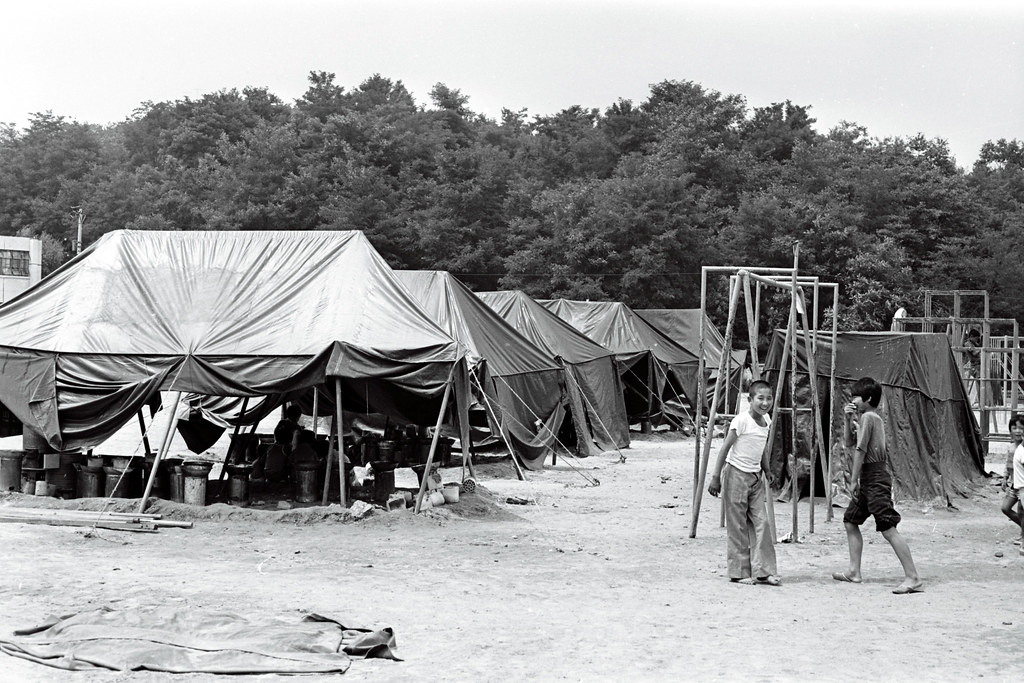 2023.07.30/ #아카이브 #옛사진 #기록 #기억 #안양대홍수 #77수해 #복구작업 #경기도/ 1977년 안양대홍수 당시 복구 작업이 본격적으로 시작되기 시작한 7월11일부터 13일의 안양시내 모습으로 당시 경기도청 홍보실에서 촬영한 현장 기록물이다. 사진에는 물이 들어찬 안양유원지입구 지하차도, 안양3동 수암천과 뚝이 무너져 휘어져버린 병목안철길, 비산동 임곡마을앞에 널린 빨래들, 비산동네의 소독차량, 교각이 주저앉은 1번국도 안양교 다리와 그 옆으로 교각이 침몰한 경부선 안양철교를 군부대에서 철골 교량을 설치해 임시 복구한 모습과  임시 피난 시설에 거주하는 사람들의 모습이 담겨있다.