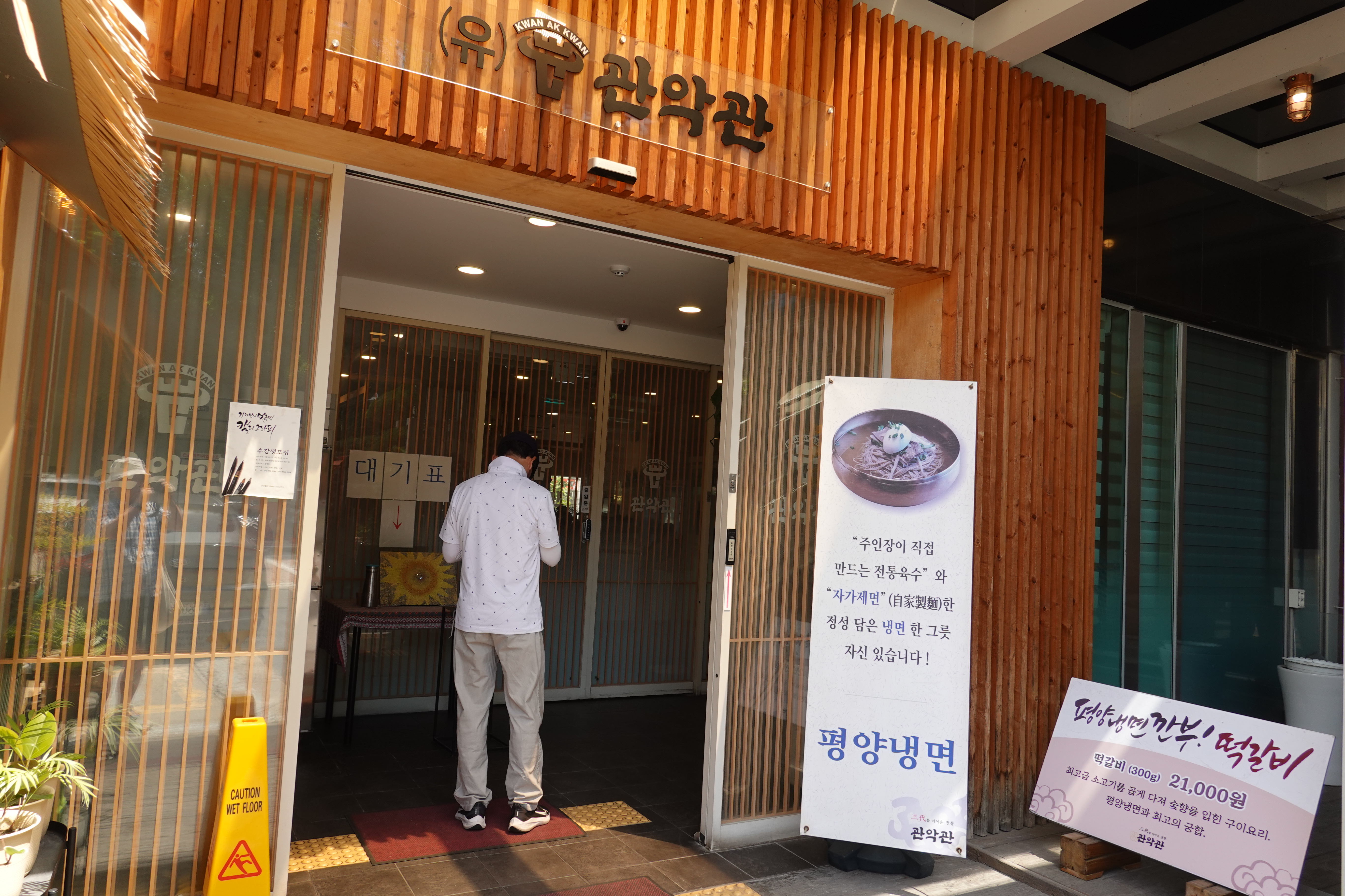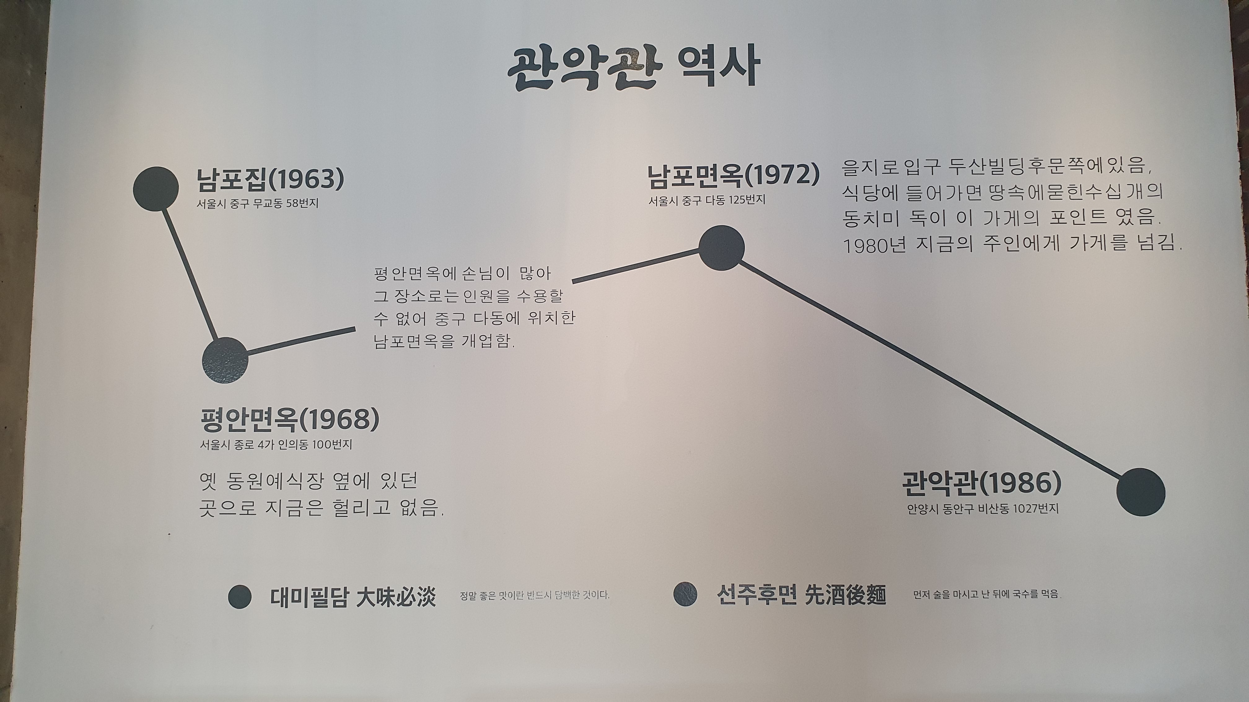 2023.08.05/ #음식 #식당 #역사 #안양 #평양냉면 #관악관 #평안면옥 #남포면옥/ 전국의 냉면집 리스트에 올라가 있는곳. 냉면 덕후들이 맛을 보기 위해 찾아오는곳. 안양에는 두곳이 있지요. 관악관과 봉가진. 두곳 모두 비산동에 있는데 오늘은 간만에 오랜 역사를 지난 관악관을 찾았습니다. 관악관은 1968년 서울에서 평안면옥을 시작으로 1972년 남포면옥, 그리고 1986년 안양에서 고깃집&냉면집 관악관으로 이어오는곳이지요. 주인장도 서울 평안면옥을 시작으로 관악관 개업, 관악관 재오픈 등으로 나뉘면서 3대를 잇지않나 싶습니다. 서울에 유명한 남포면옥이 있는데 사실 관악관이 대를 잇는 뿌리라 할수 있지요. 관악관은 2010년 식당을 접고 업종을 스크린골프장으로 변경합니다. 당시 한동안 냉면을 맛보지 못하는것에 대해 많은 원성이 있었던 것으로 압니다, 이후 스크린 골프장 한쪽에 자그맣게 식당을 하다가 결국 2015년 다시 관악관을 재오픈하면서 냉면을 내놓게 되지요. 재오픈 초기에는 냉명 육수에 대해 혹평이 적지않았는데 시간이 흘러 지금은 다시 에전의 깔끔하고 슴슴한 맛을 되찾은듯 합니다, 관악관 1층 화장실을 가다보면 관악관 억사와 더불어 세수대야만한 오래된 도자기 냉면그릇도 볼수 있습니다.