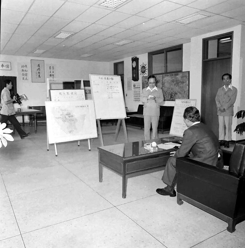 1977년 안양대홍수 당시 사진으로 국가기록원 웹사이트에서 발견한 기록물이다. 안양 대홍수(1977.7.8-9) 당시 비가 그치고 다음날인 7월10일 박정희 대통령이 안양시를 방문했다. 당시 박통은 안양시청(현만안구청)을 찾아 2층 시장실(현 구청정실)에서 수해 피해 보고를 받았다. 박통은 이후 복구작업이 본격적으로 시작된 이후인 7월20일 한차례 더 안양시청을 찾아 브리핑을 받았다.