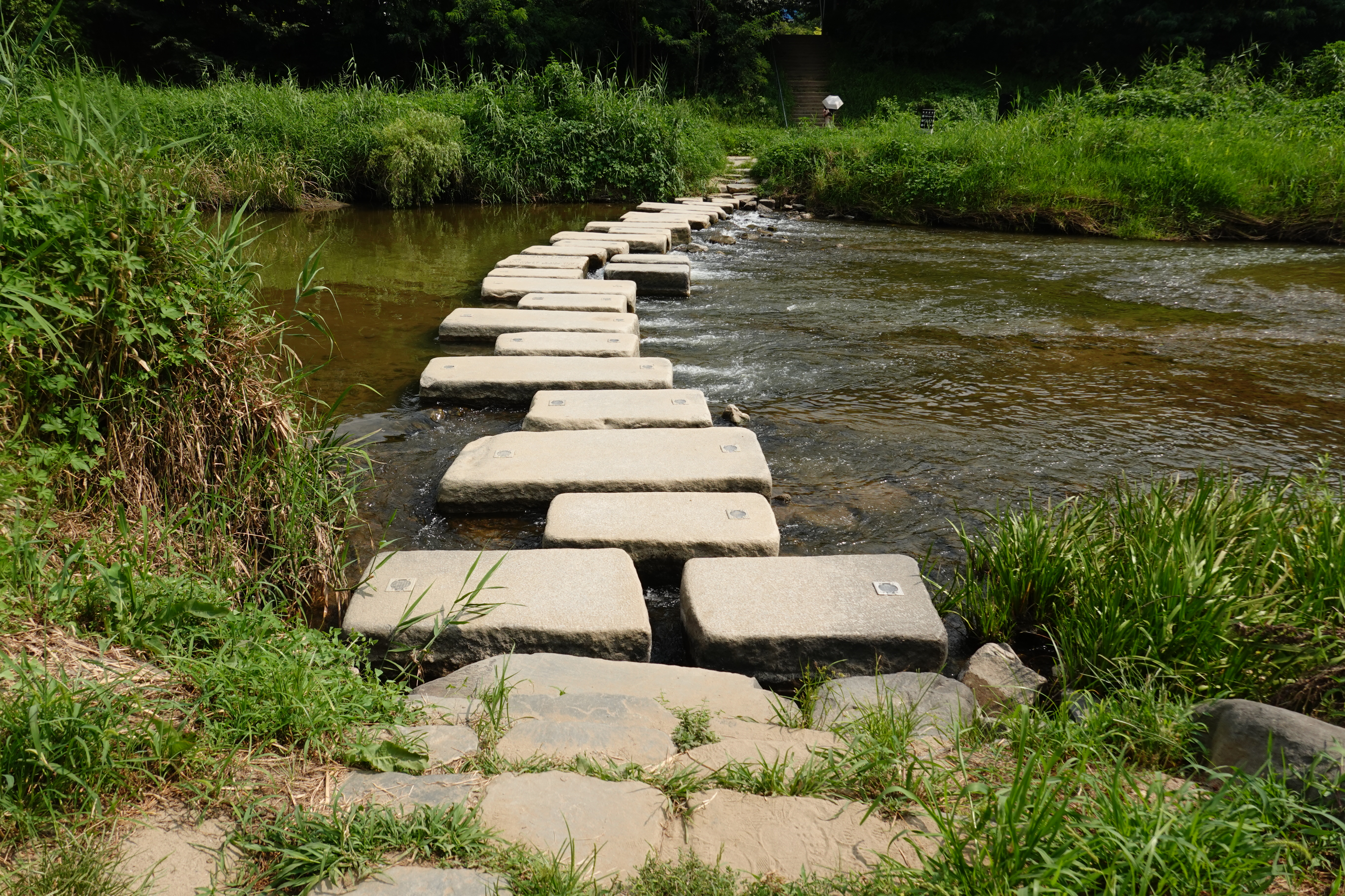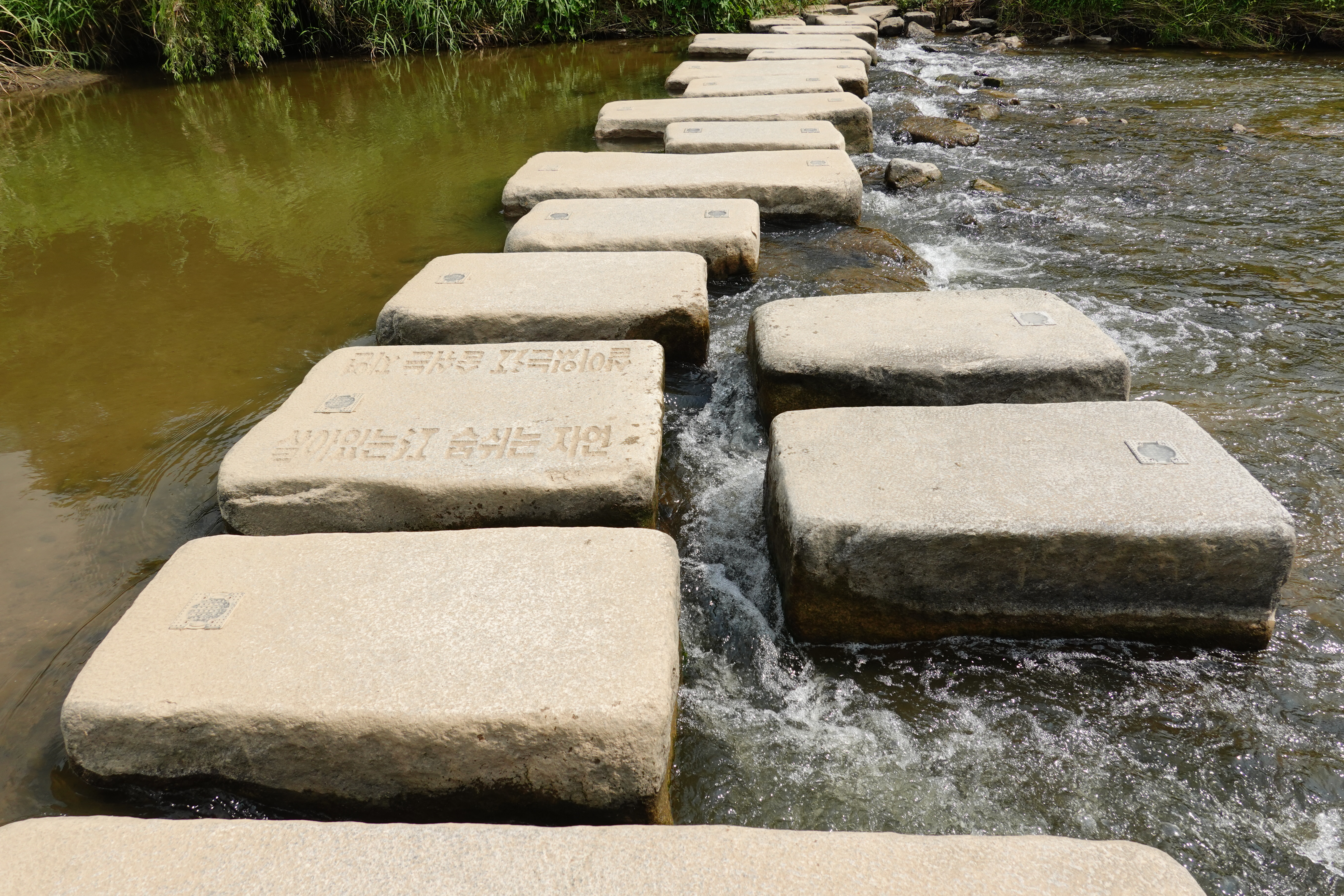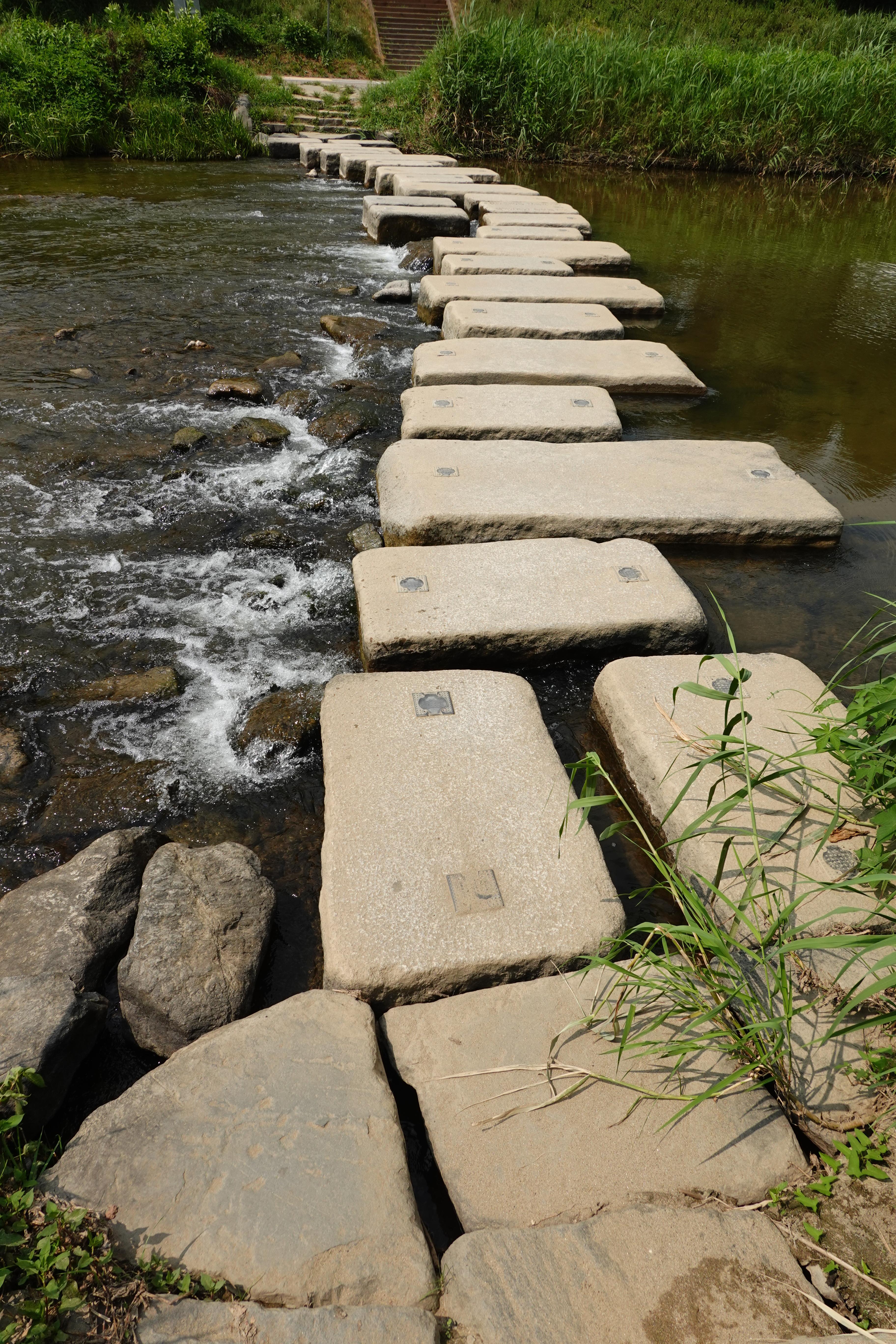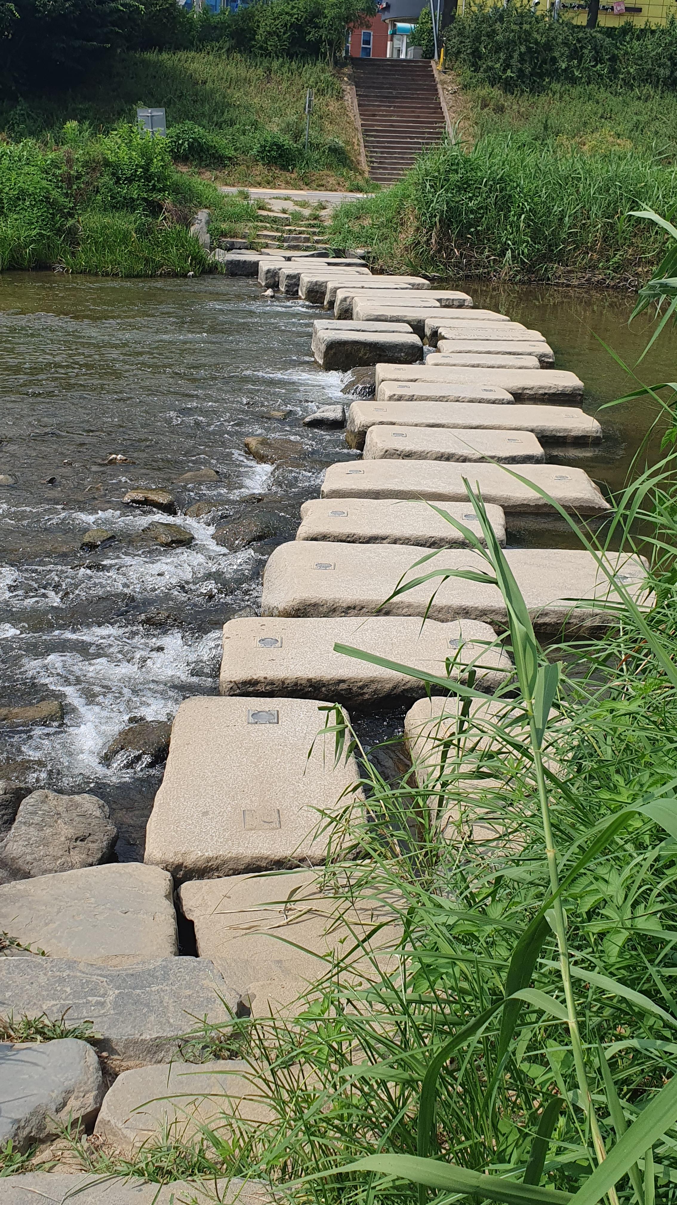 2023.08.06/ #도시기록 #학의천 #돌다리 #제인구달/ 학운공원앞 돌다리. 제인구달 박사가 2004년 한국 방문시 11월 9일 안양 학의천을 방문했다. 제인구달이 학의천을 방문한 이유는 국내 대표적인 "죽은 하천"에서 되살아나 버들치, 참게 등이 서식하고 철새까지 날아오면서 도내에서 수질개선 성공 하천의 대표적 사례가 되었기에 경기도초청으로 방문햇다. 제인 구달박사는 당시 학운공원앞 학의천을 돌아보며 수질개선 추진과정, 생물서식지로서의 하천 상태 등을 확인하고 환경단체 회원 및 초등학생들과 환경의 중요성, 환경보호 방안 등에 대해 이야기를 나누고 사진속 돌다리에서 하천에 물고기도 방류했다. 이를 기념하는 제안구달 방문지 표지석이 없기에 저 돌다리를 "제인구달 돌다리"라 부른다.