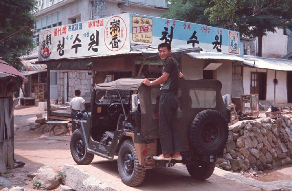 2023.08.08/ #아카이브 #기록 #엣사진 #안양유원지 #since1968/ 미군 짚차앞 그릴에 빨간 글씨로 흰바탕 판에 로드 테스트라고 적힌 표시판이 붙여진 도로주행 연습용 차량을 몰고 무더위를 식히기 위해 안양 유원지 계곡을 찾아온 주한 미군 운전병 훈련 교관과 신병이 찍은 1968년 8월의 안양유원지 풍경이다. photo : Mueller