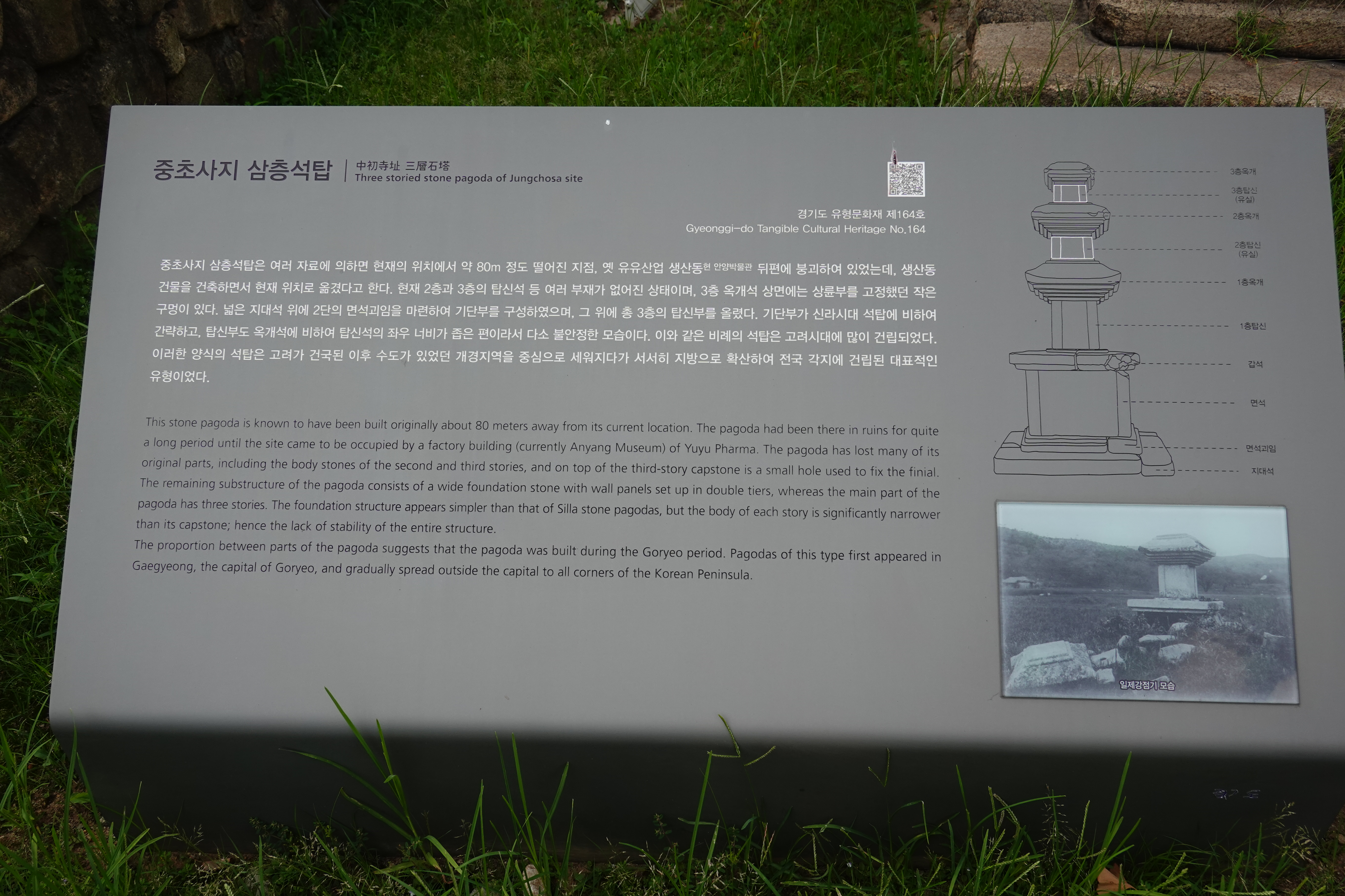 <조선총독부 관보> 1934년 8월 27일자에 고시된 보물 제7호 '중초사삼층석탑(中初寺三層石塔)'의 지정내역에는 그 소재지가 경기도 시흥군 동면 안양리 213번(田)으로 표시하고 있다. 한편 보물 제6호 '중초사당간지주(중초사당간지주)은 그 소재지가 경기도 시흥군 동면 안양리 212번1 (田)으로 표시하고 있어, 애당초 그 위치가 서로 달랐음을 확인할 수 있다.