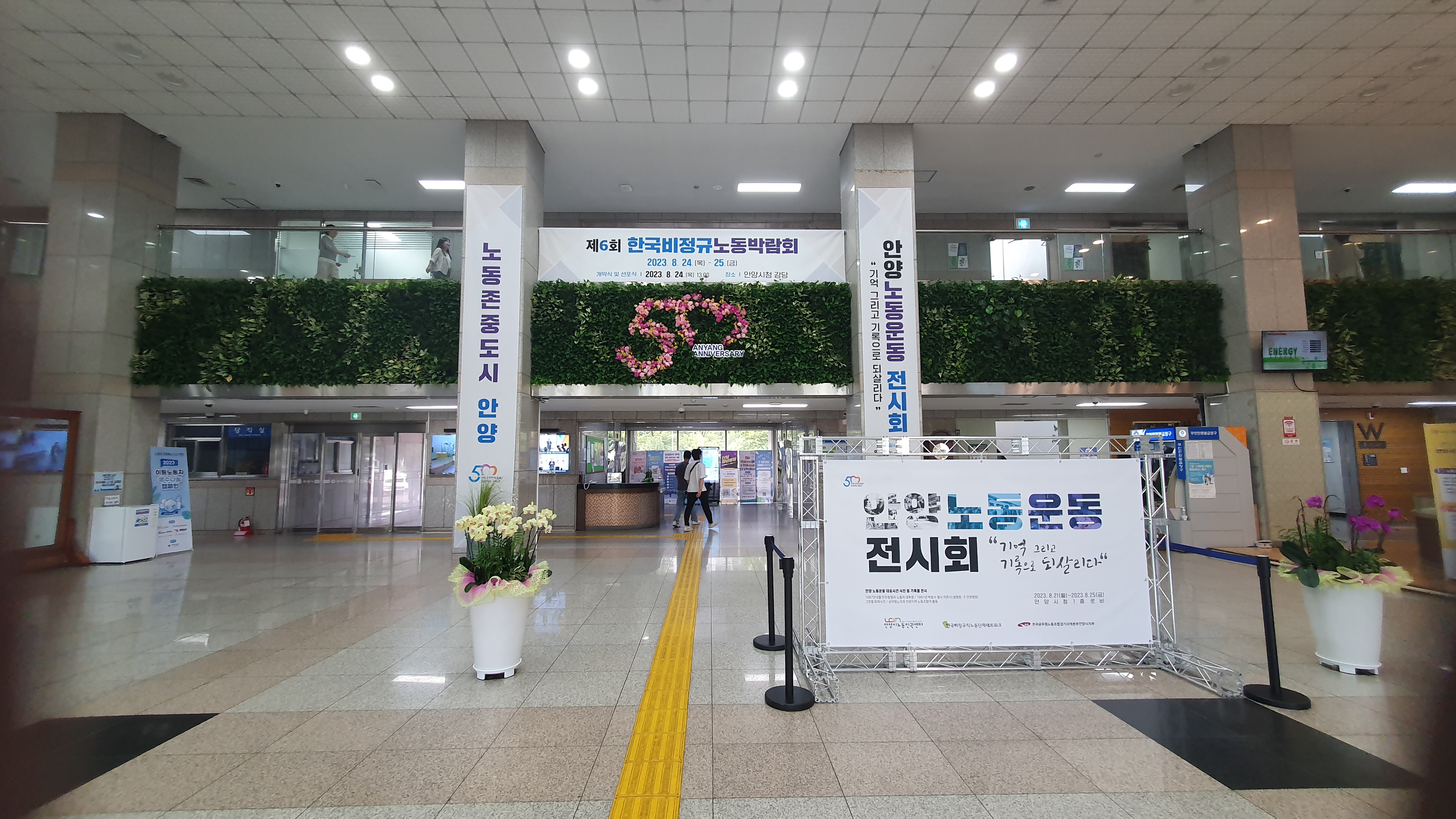 안양시노동인권센터 이사장을 겸한 최대호 안양시장은 전시회 첫날인 21일 전시장을 찾아 “이번 전시회가 노동과 인권, 복지의 가치를 함께 만들어가는 노동존중도시 안양을 위한 시민들의 목소리를 모으는 자리가 되기를 바란다”고 말했다.