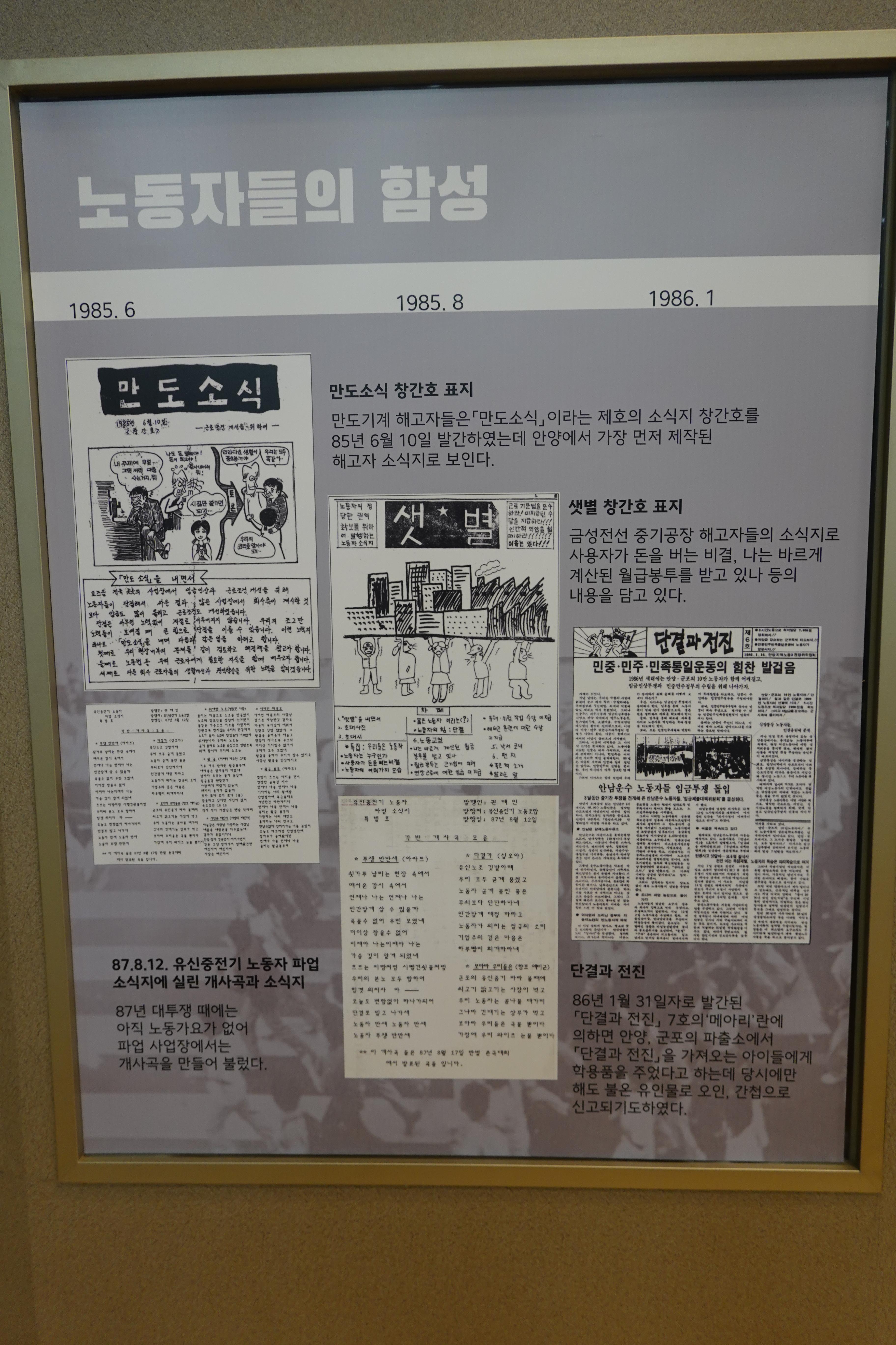 지난 21일부터 시작된 이번 전시는 시 승격 50주년을 맞아 어려운 시대를 극복하며 지역을 발전시킨 안양시의 노동운동 역사를 돌아보기 위해 기획됐다.
