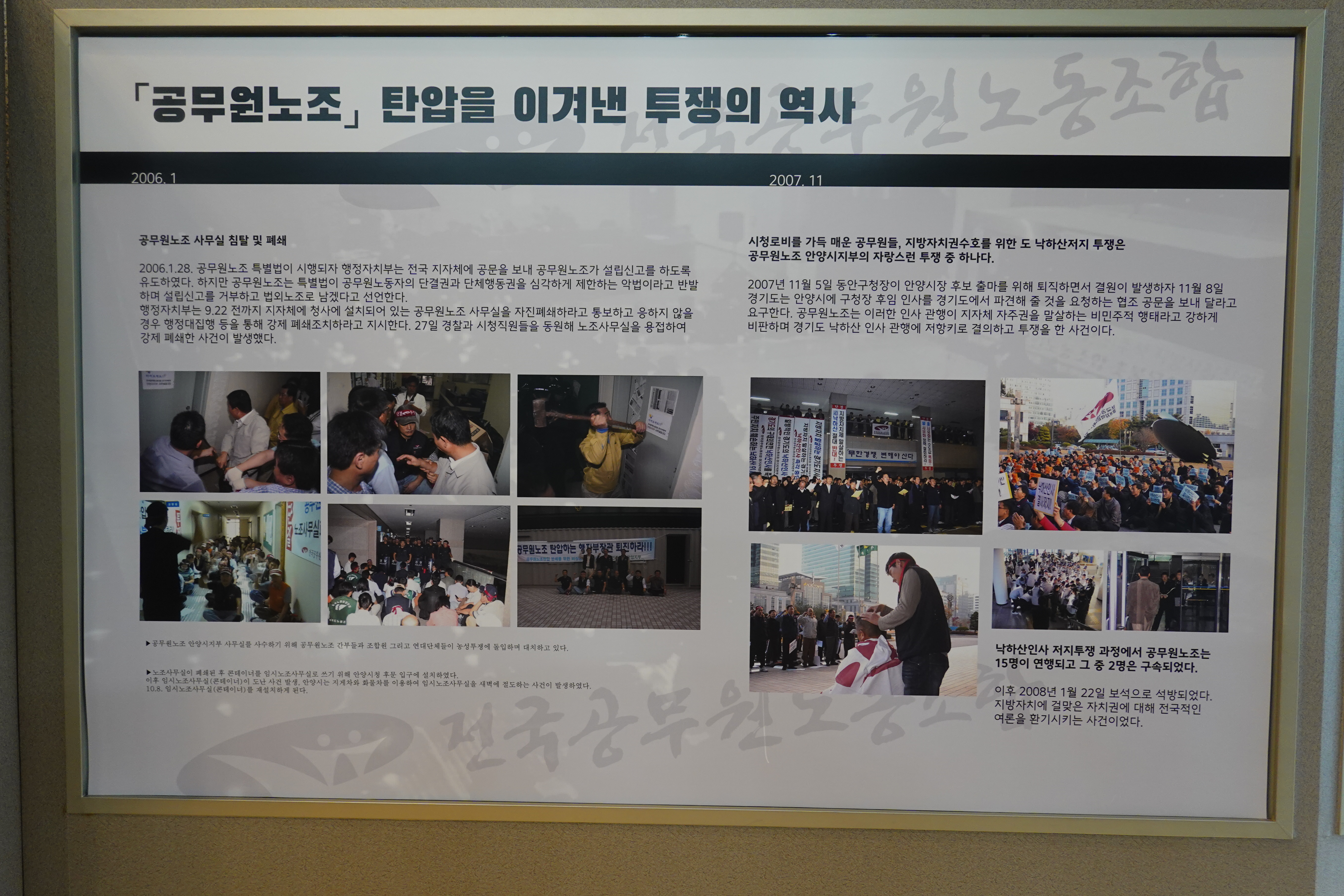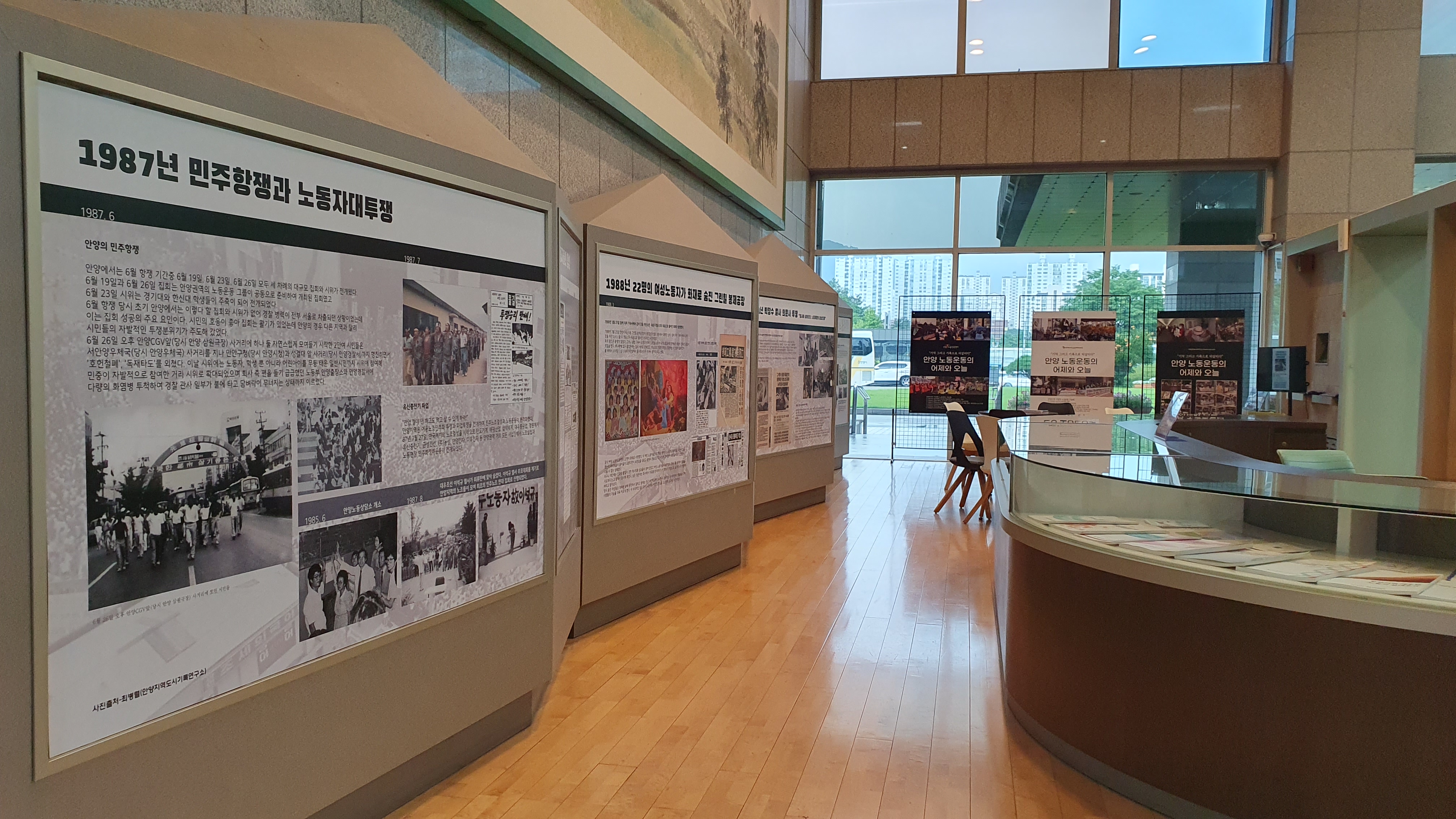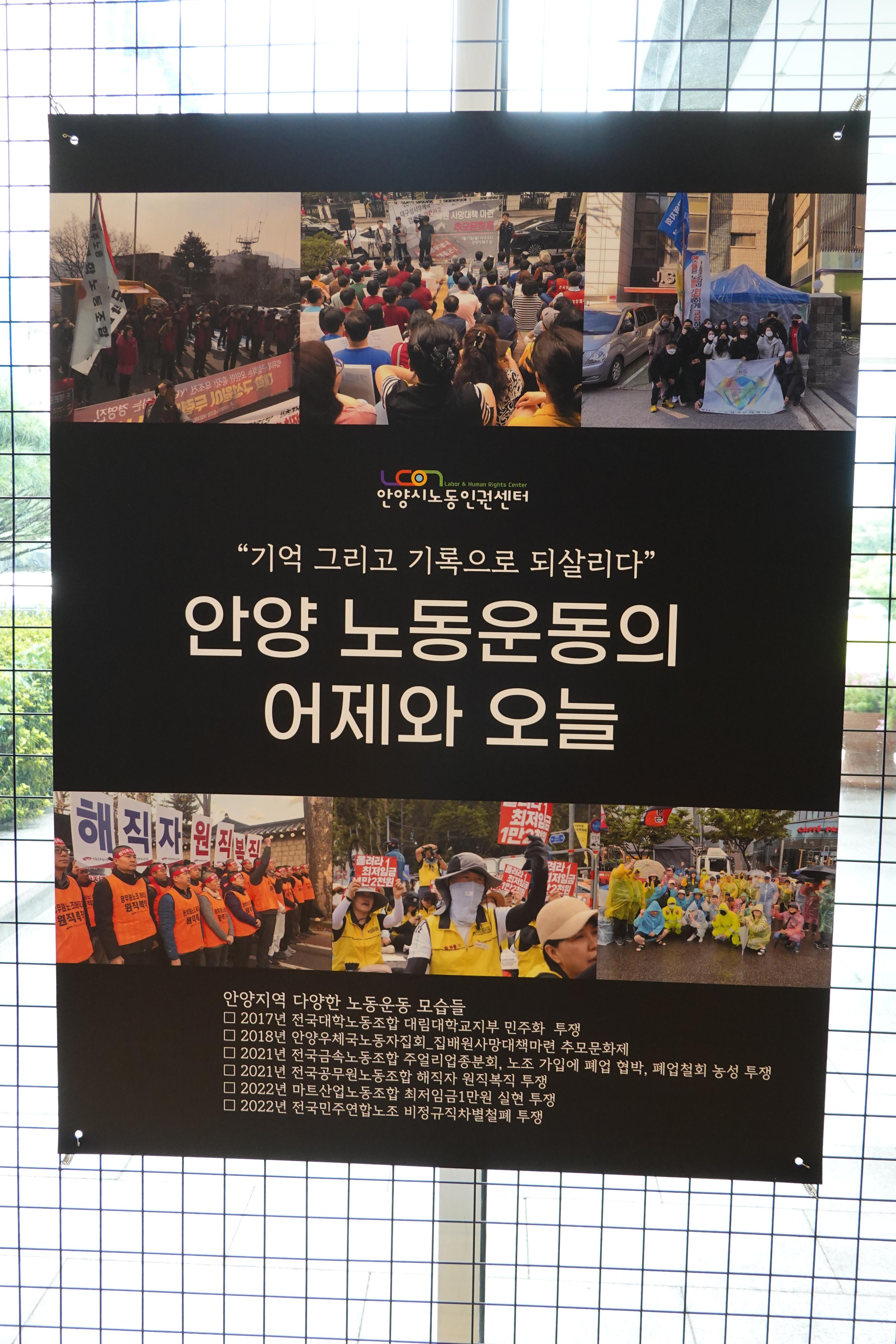 안양시 노동운동의 역사를 담은 전시회 “기억 그리고 기록으로 되살리다”가 안양시청 1층 로비에서 열리고 있다.