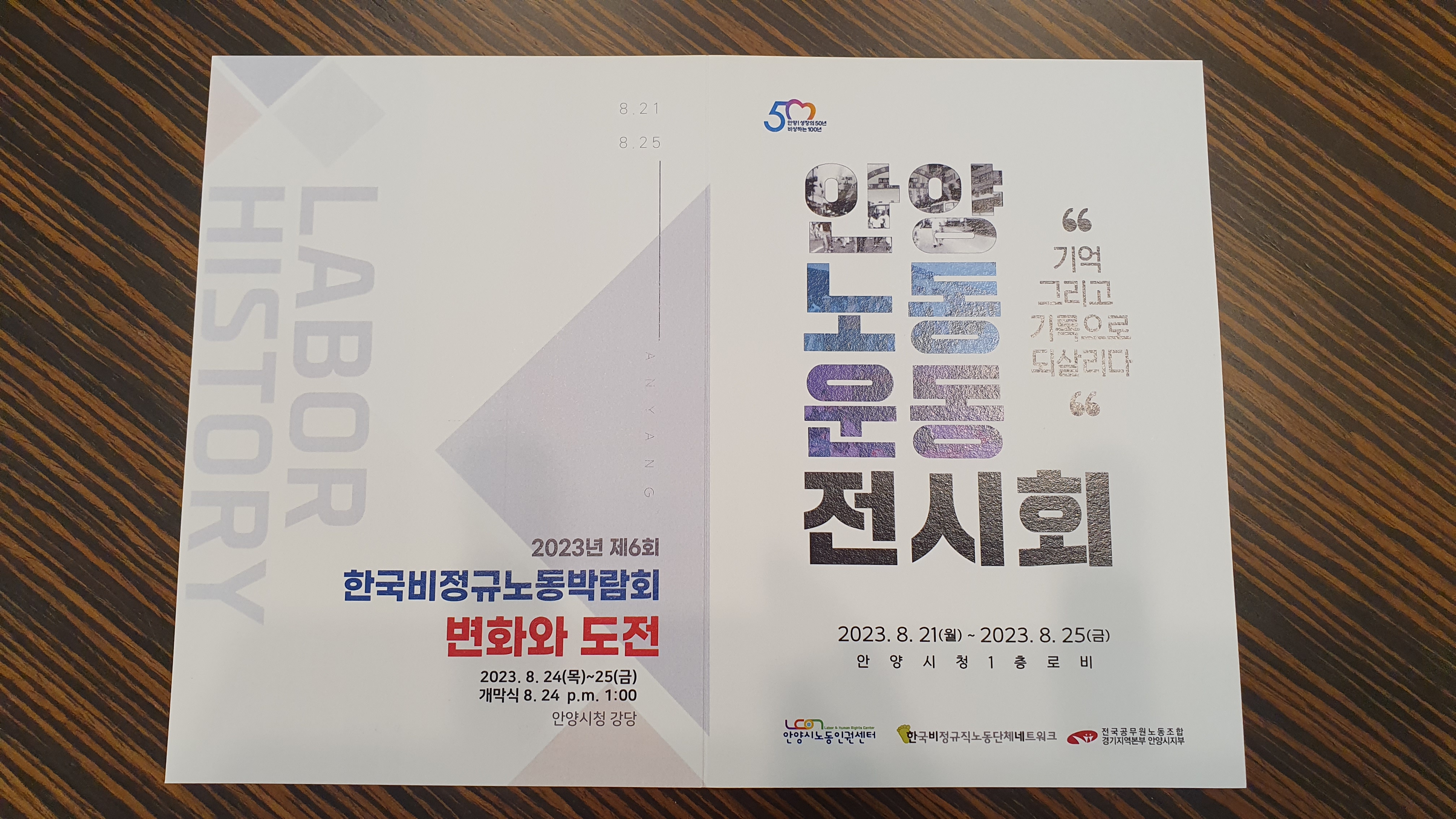 오는 8월 24일~25일 안양에서 개최되는 한국비정규노동박람회(24일 오후1시 개막식) 부대행사로 마련된 이번 전시회는 안양시노동인권센터(센터장 손영태)와 한국비정규직노동단체네트워크(공동의장 박재철⋅홍춘기, 이하 한비네), 전국공무원노동조합 경기지역본부 안양시지부(지부장 라일하, 이하 공무원노조)가 공동으로 주관했다.