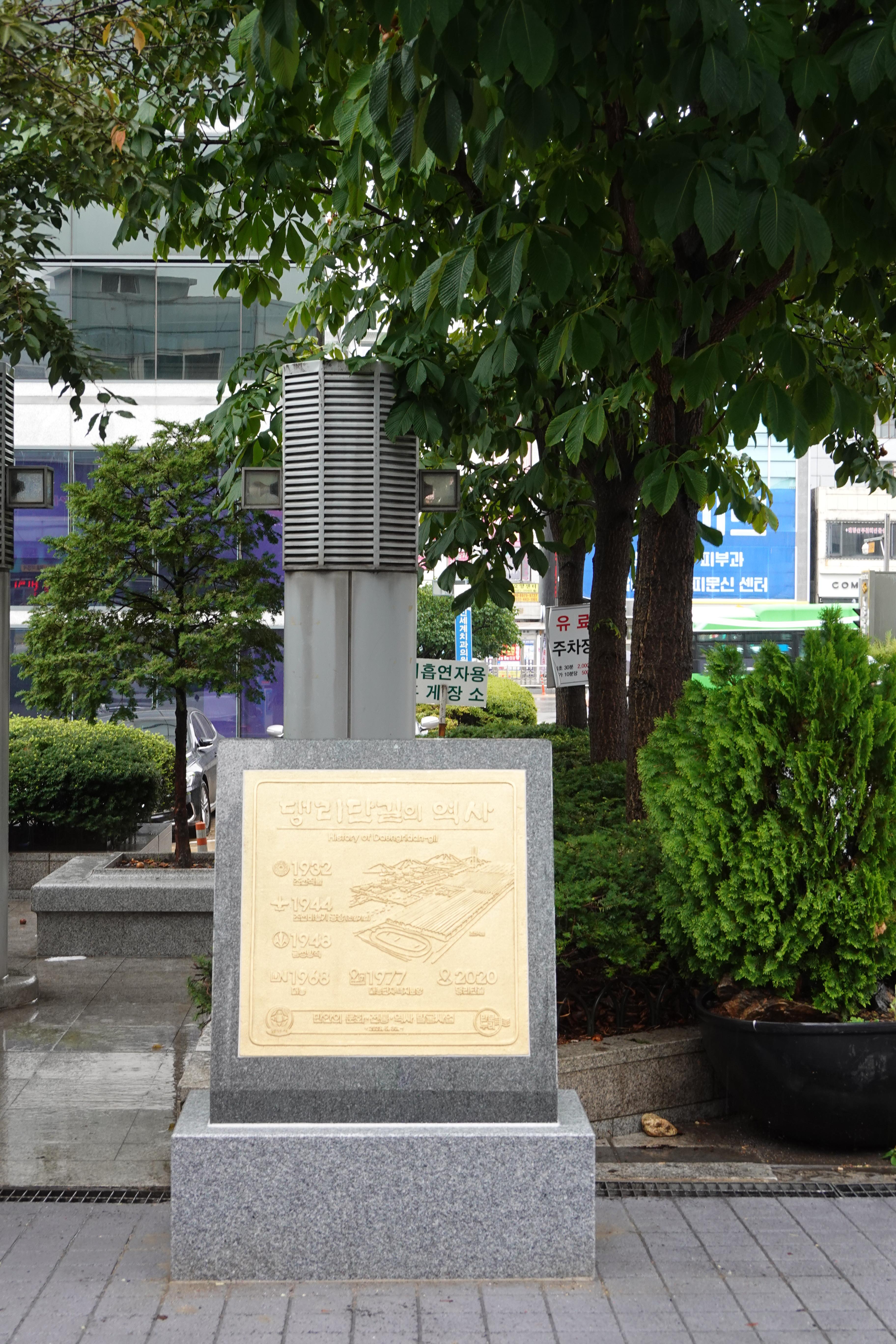 해당 표지석엔 1932년 조선직물주식회사, 1944년 조선비행기공장, 1948년 금성방직, 1968년 대농, 1977년 대농단지택지분양, 2020년 댕리단길까지 이곳 땅의 이야기를 담은 것으로 90년 역사의 흐름을 한눈에 볼수 있어 이곳 댕리단길을 찾는 주민과 방문객에게 새로운 볼거리를 제공하고 역사를 배우는 계기를 마련해줄 것으로 기대된다.