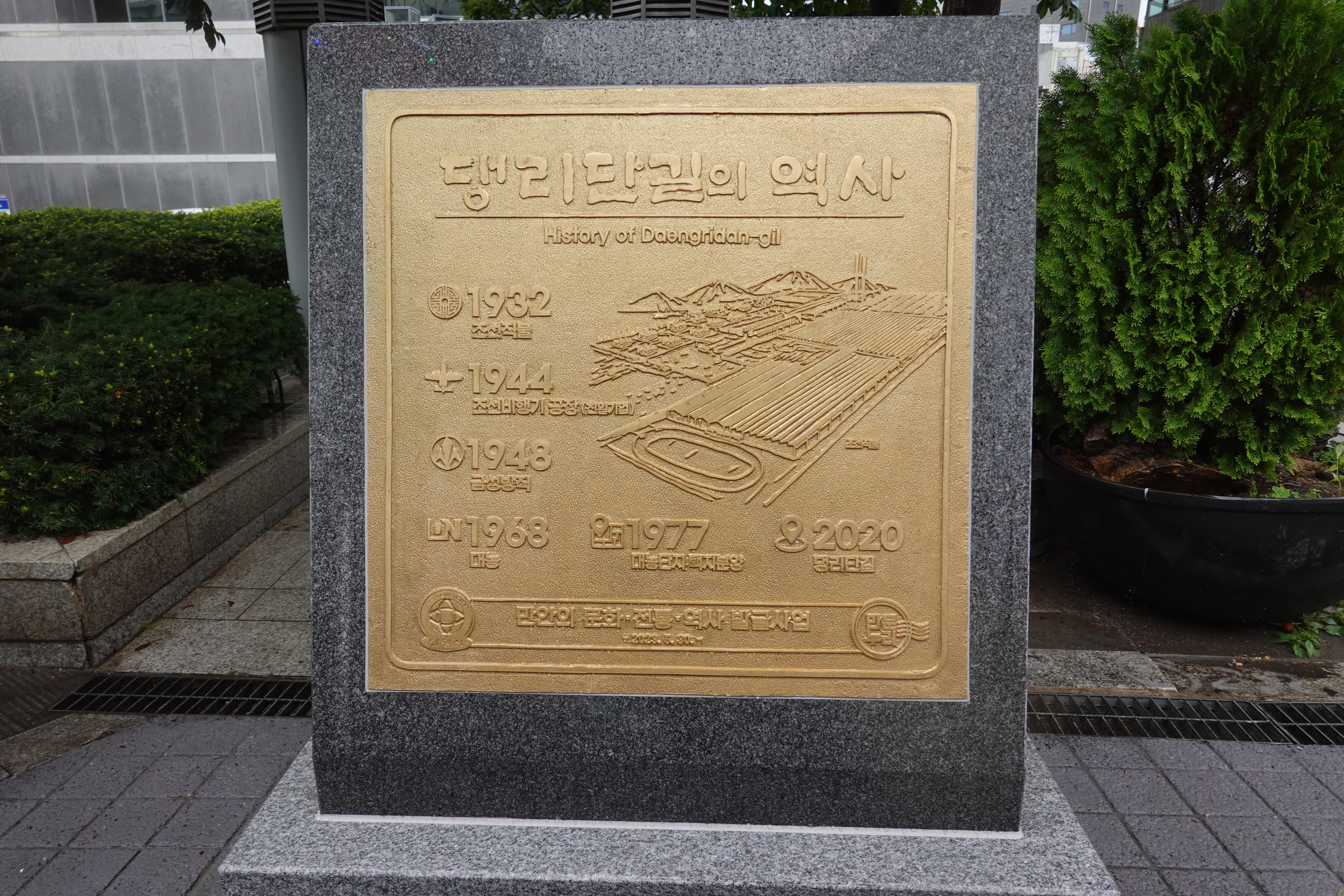 '댕리단길 역사 안내 표지석'은 안양시 만안구의 문화 유산 발굴·계승을 위해 2022년 구청에 처음 구성된 민간협의체인 <만문누리>에서 안양시 승격 50주년을 기념해 추진한 사업으로 지난해부터 관련 자료를 빌굴하고 정리해 대형동판에 담은 것으로 지난 7월 동판 제작에 들어가 약 7주간에 걸쳐 표지석이 완성됐다.