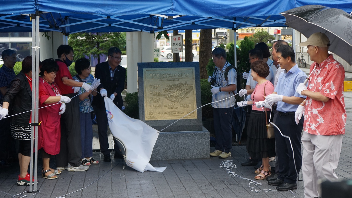 한편 폭우가 쏟아지는 우중속에 진행된 이날 행사에는 김승건 만안구청장과 최병렬 만문누리협의체 회장, 김정중,장명희시의원을 비롯 최돈익 국민의힘 안양만안당협위원장, 안양3동 사회단체장, 오병환 안양3동 상인연합회장, 정경환 댕리단길 번영회장 등 30여명이 참석한 가운데 댕리단길 역사 안내 표지석' 제막식을 진행하고 기념촬영을 함께 했다.