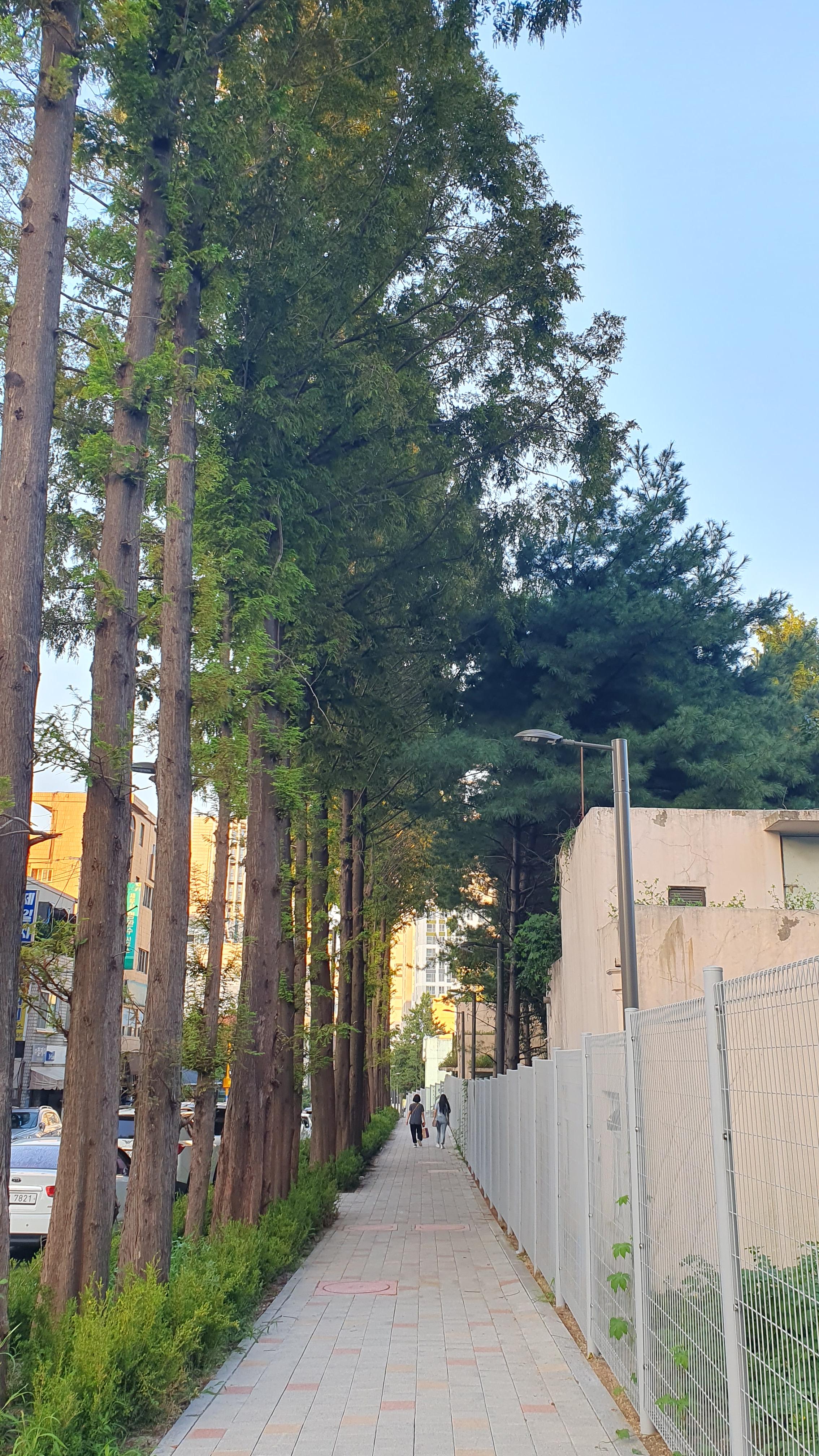2023.08.25/ #도시기록 #안양 #안양6동 #소곡로 #인도 #통학로/ 안양6동 소곡로에서 만난 풍경. 소곡로 남쪽 옛검역원 북쪽 담장을 부지 안쪽으로 셋백시켜 조성한 보행로(인도). 생겨 소곡자이아파트 등 안양6동에서 안양초교로. 중앙로 도로 버스정류장에서 신성중.고교로 통학하는 학생들이 안전하고 편리하게 걸어다닐수 있게됐다. 안양세무서 끝자락에서 중앙로(은혜와진리교회 남쪽사거리)와 연결되는 이 도로는 소곡천을 복개하여 만든 길로 길폭이 좁아 인도가 없었다. 안양시는 검역원 담장을 허물고 부지 안쪽으로 보행로를 만들었다. 담장을 허문 일부 구간에는 기존에 심어져있던 메타쉐콰이어 가로수가 자라고 있어 나무숲 그늘이 생겨 땡볕 여름철 그늘 사이로 쾌적하게 다닐 수 있는 걷고싶은 길로 탄생했다.