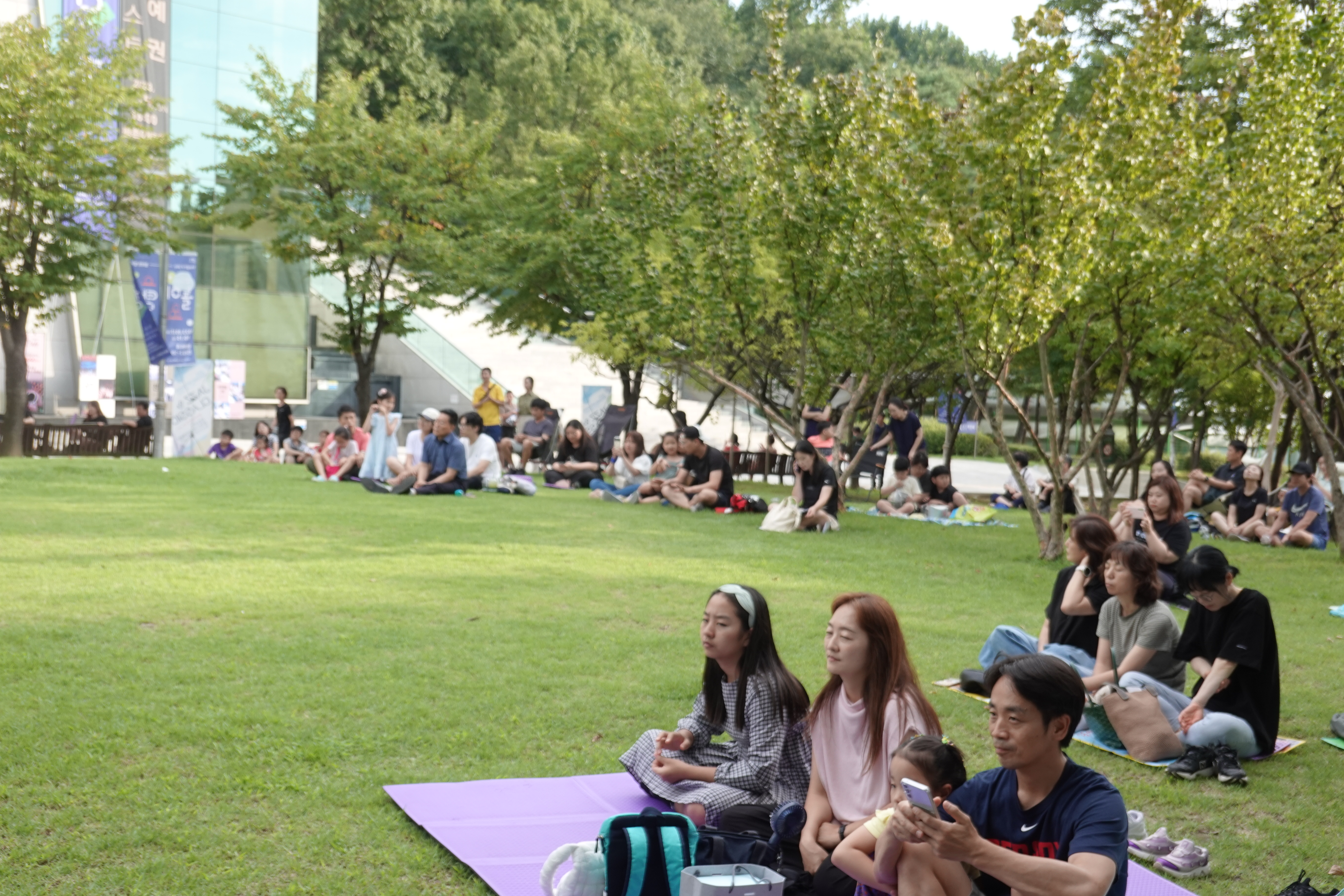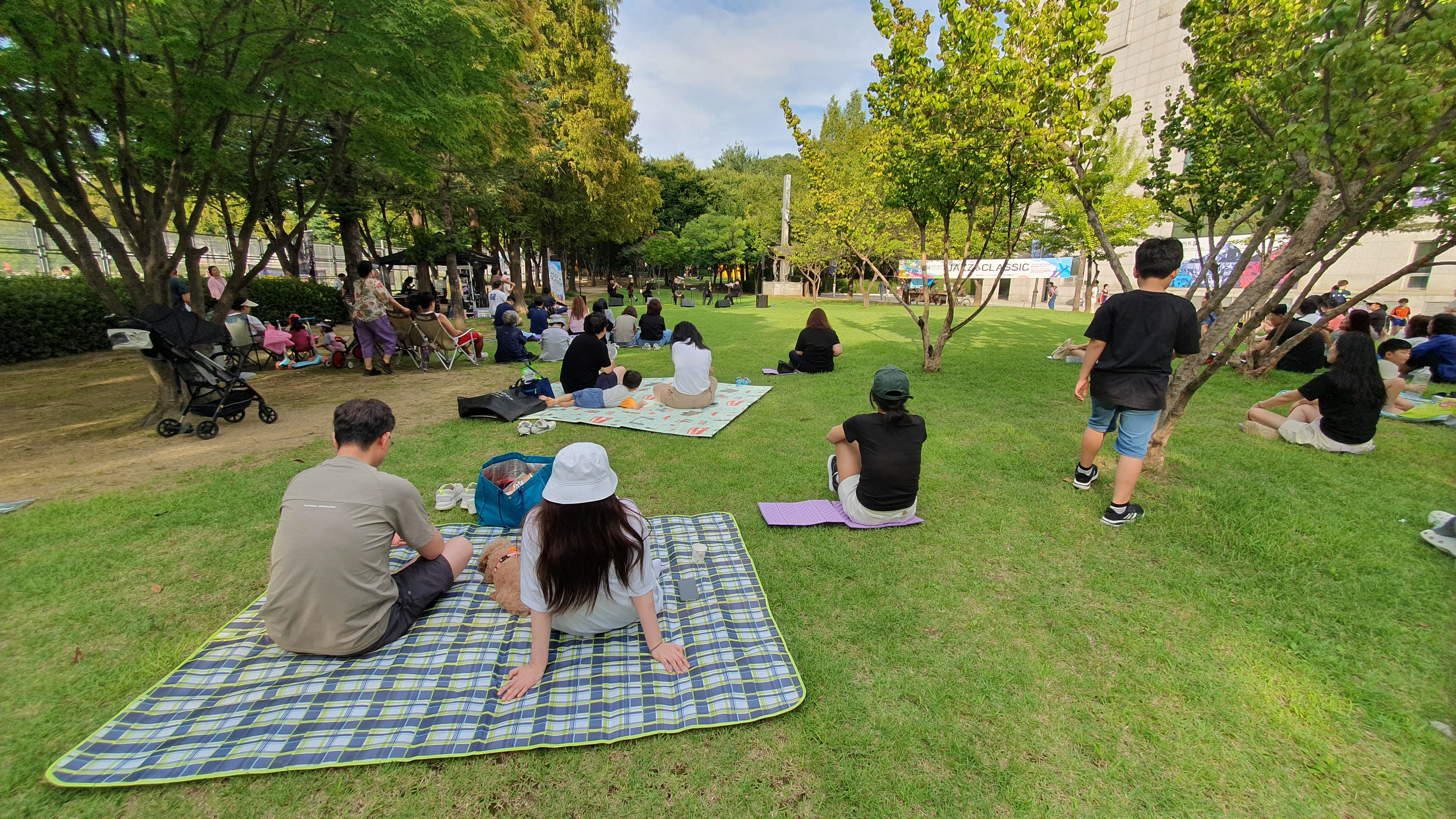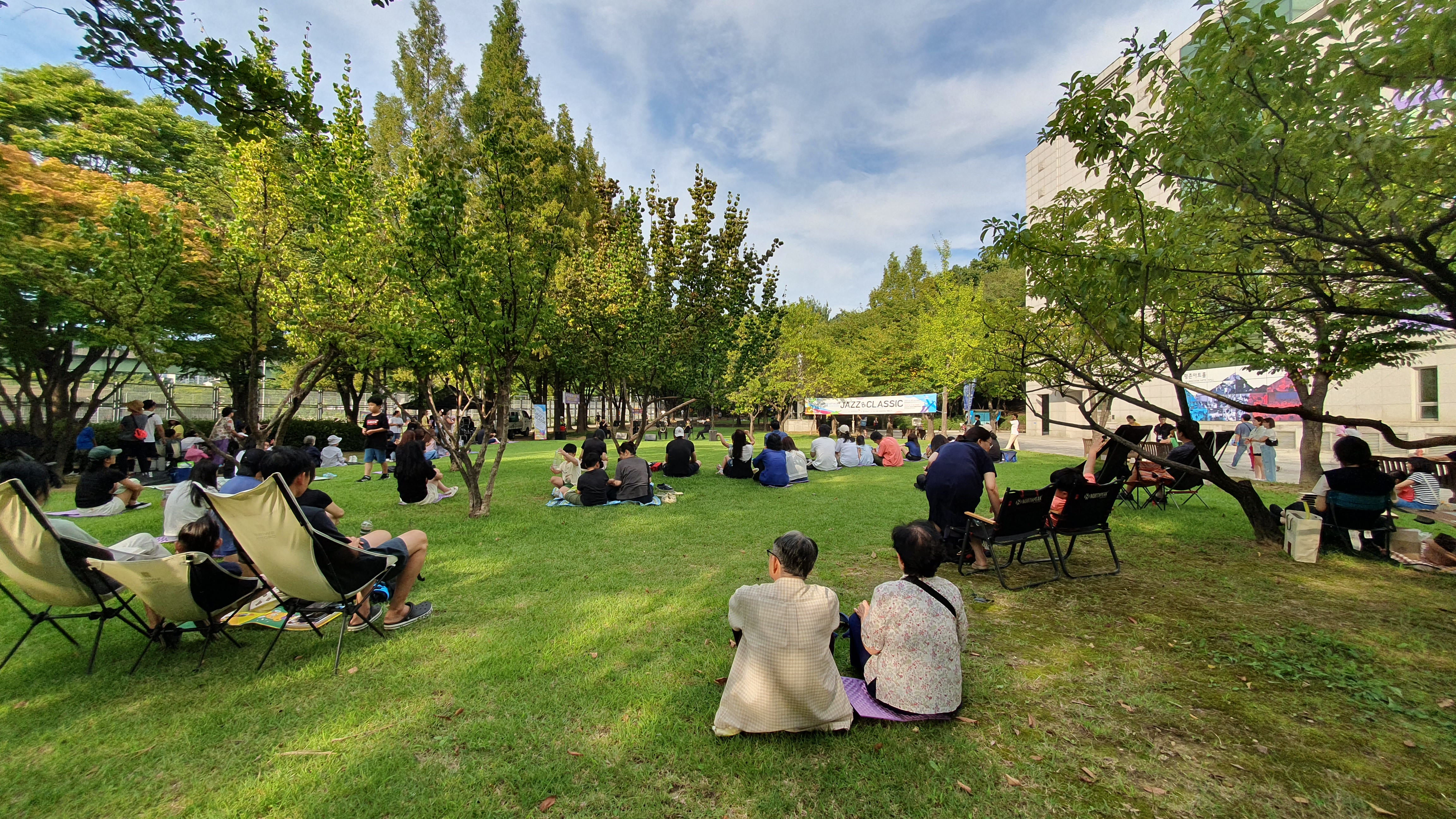 돗자리와 캠핑용의자를 가져와 앉거나 누워서 편안하게 감상하는 시민들이 많았다.