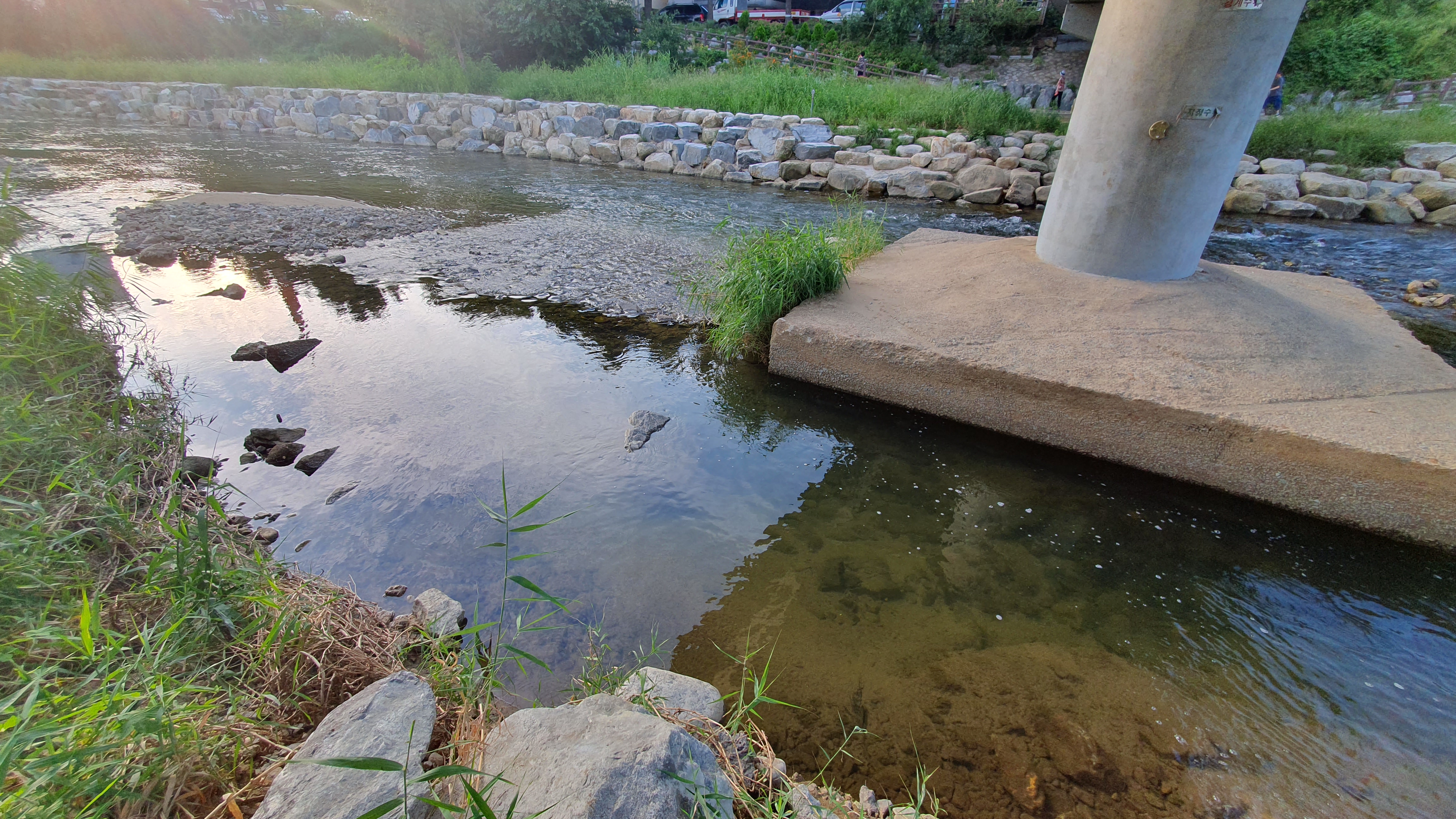 2023.09.02/ #도시기록 #학의천 #생태 #동안교/ 동안교 다리밑 웅덩이에 잉어, 메기, 자라 등 다양한 생물들이 살았는데 천변에 석축을 쌓고 물길이 바뀐 이후에는 전부 사라졌다. 다들 어디로 갔을까.