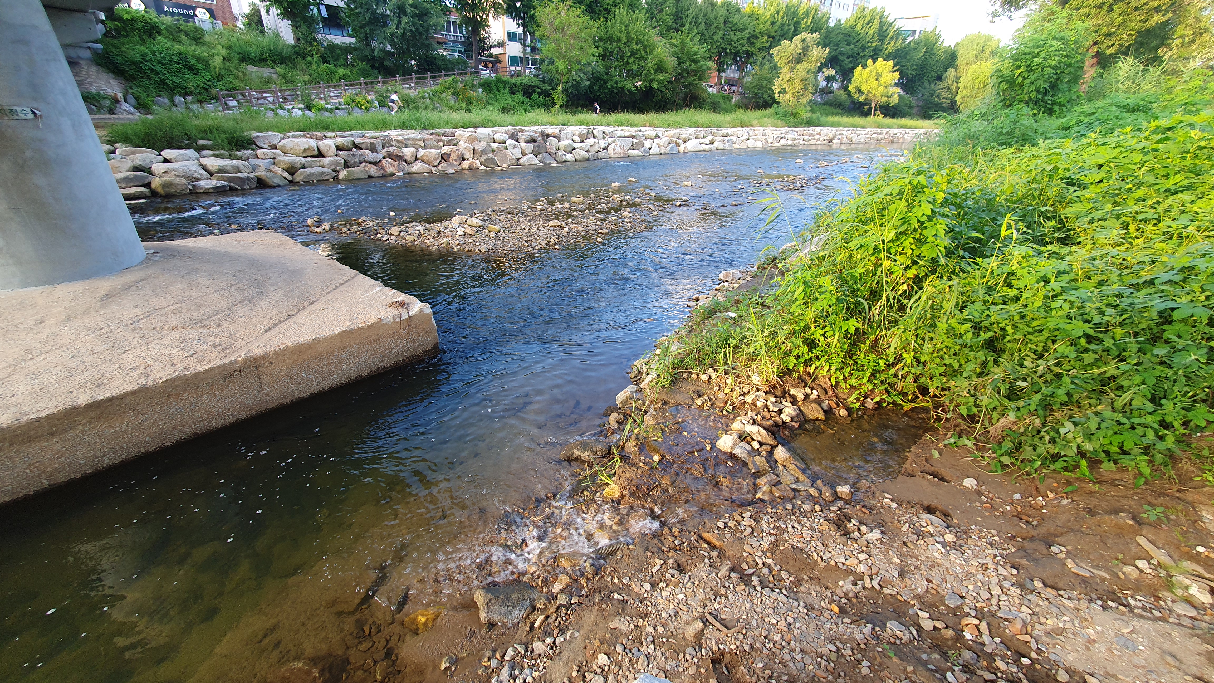 2023.09.02/ #도시기록 #학의천 #생태 #동안교/ 동안교 다리밑 웅덩이에 잉어, 메기, 자라 등 다양한 생물들이 살았는데 천변에 석축을 쌓고 물길이 바뀐 이후에는 전부 사라졌다. 다들 어디로 갔을까.