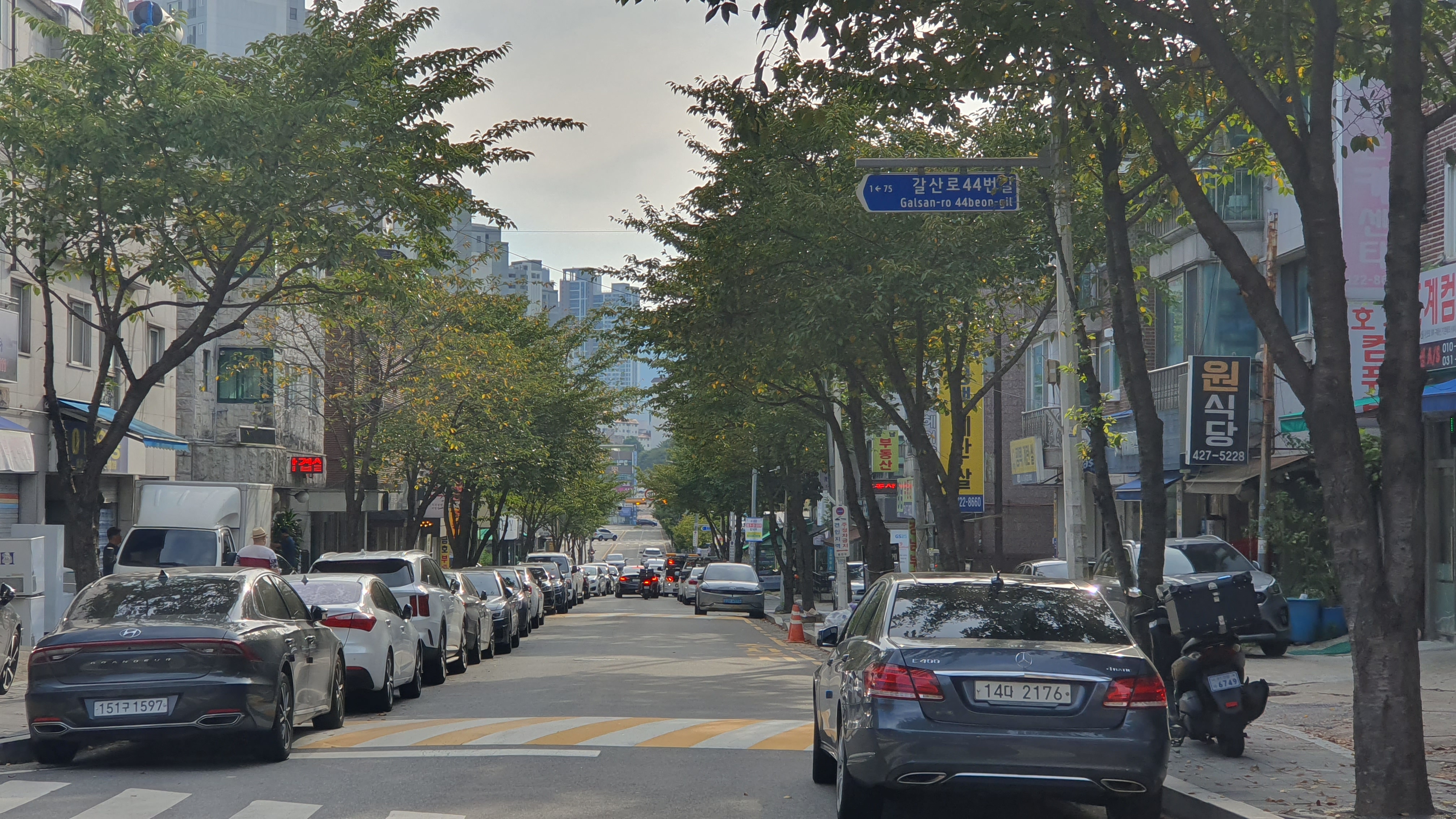 2023.09.02/ #도시기록 #안양 #평촌 #갈산동/ 안양 신기대로 남쪽 신기중학교에서 덕현초교, 평촌과학기술고를 지나 흥안대로까지 잇는 갈산로 일대에는 걷고 싶은 명품거리가 있다. 갈산로 좌우 주변에는 디자인과 인테리어에 신경 쓴 예쁜 건물과 카페, 음식점, 단독주택들이 자리하고 중간에 솔향어린이공원과 갈산공원도 있는 이지역 골목은 느릿느릿 산보하며 걷기에도 좋다.