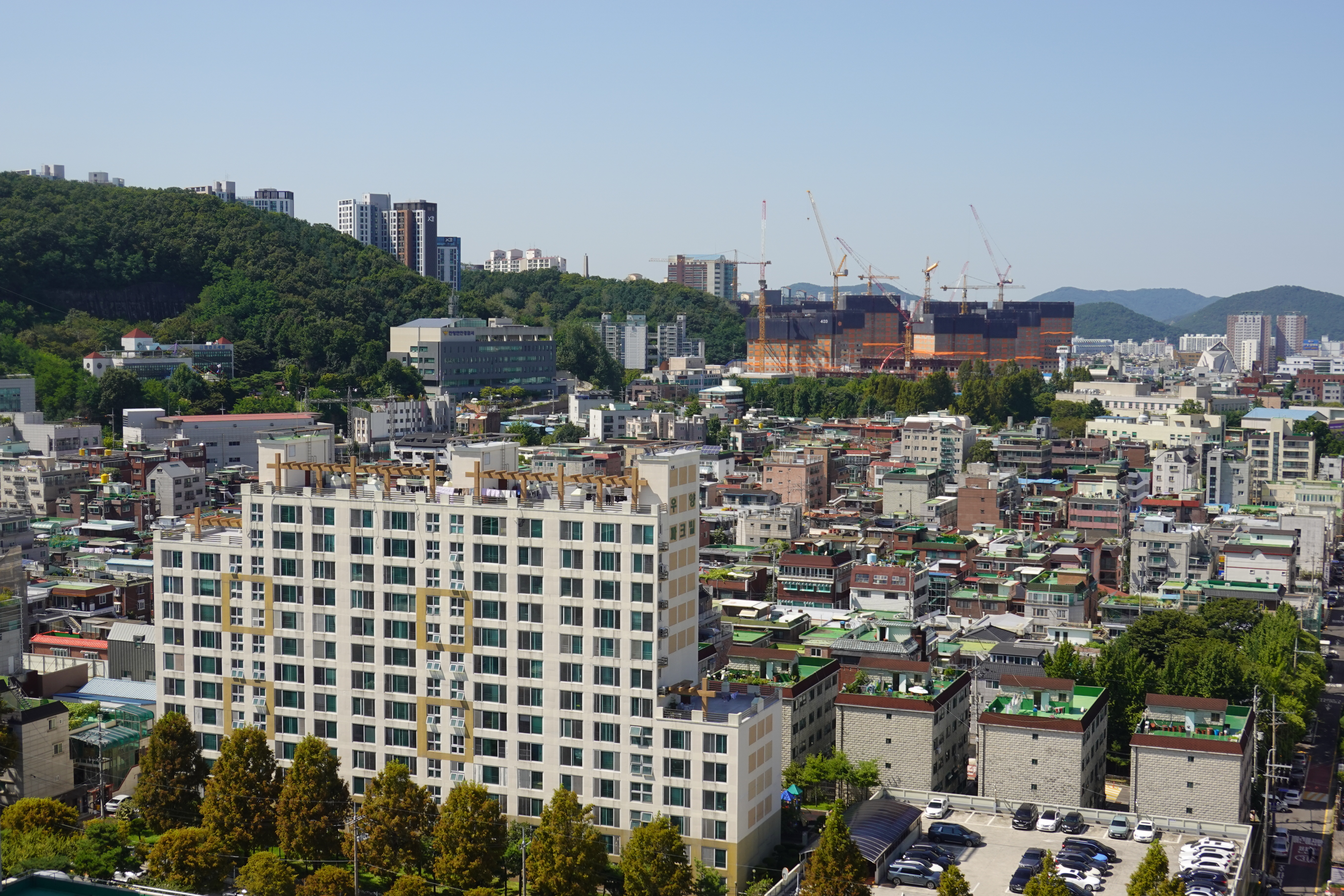 2023.09.09/ #도시기록 #안양5동 #재개발 #냉천마을/ 신축아파트 쑥숙 올라간다. 안양 냉천지구 주거환경개선사업은 안양시 안양동 618번지 일원 11만9000㎡ 부지에 지하 3층~지상 29층 총 4개 블록 18개동 2329가구를 건설하는 사업으로 ‘안양 어반포레 자연& e편한세상’ 브랜드로 분양될 예정이다. 이 중 3개 단지 전용면적 46~98㎡ 1,087세대를 일반 분양으로 공급한다. GH와 DL이앤씨컨소시엄이 시행하며 공동주택단지를 비롯해 공원, 녹지, 유치원 부지가 계획돼 있다. 2025년 1월께 준공될 예정이다.