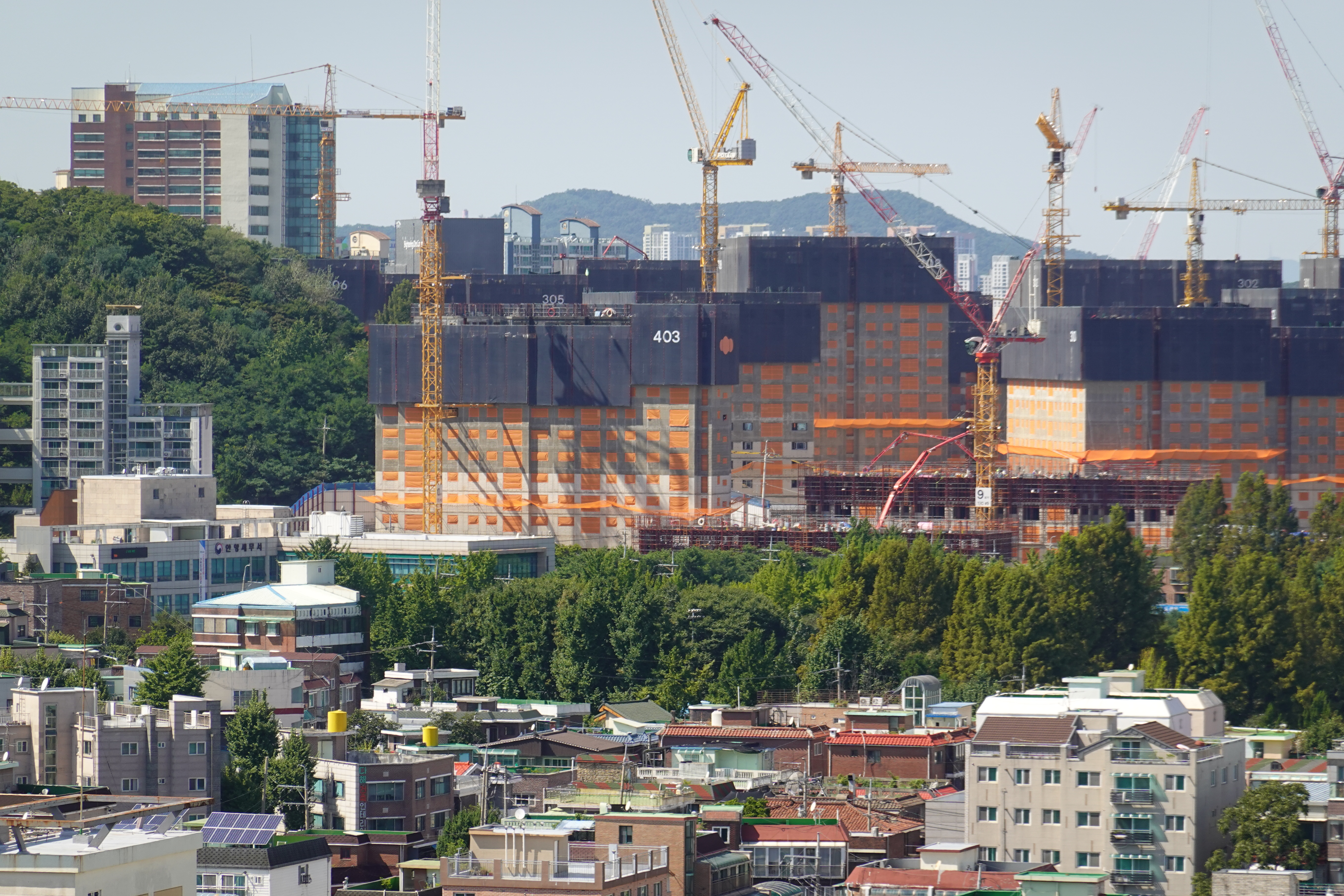 2023.09.09/ #도시기록 #안양5동 #재개발 #냉천마을/ 신축아파트 쑥숙 올라간다. 안양 냉천지구 주거환경개선사업은 안양시 안양동 618번지 일원 11만9000㎡ 부지에 지하 3층~지상 29층 총 4개 블록 18개동 2329가구를 건설하는 사업으로 ‘안양 어반포레 자연& e편한세상’ 브랜드로 분양될 예정이다. 이 중 3개 단지 전용면적 46~98㎡ 1,087세대를 일반 분양으로 공급한다. GH와 DL이앤씨컨소시엄이 시행하며 공동주택단지를 비롯해 공원, 녹지, 유치원 부지가 계획돼 있다. 2025년 1월께 준공될 예정이다.