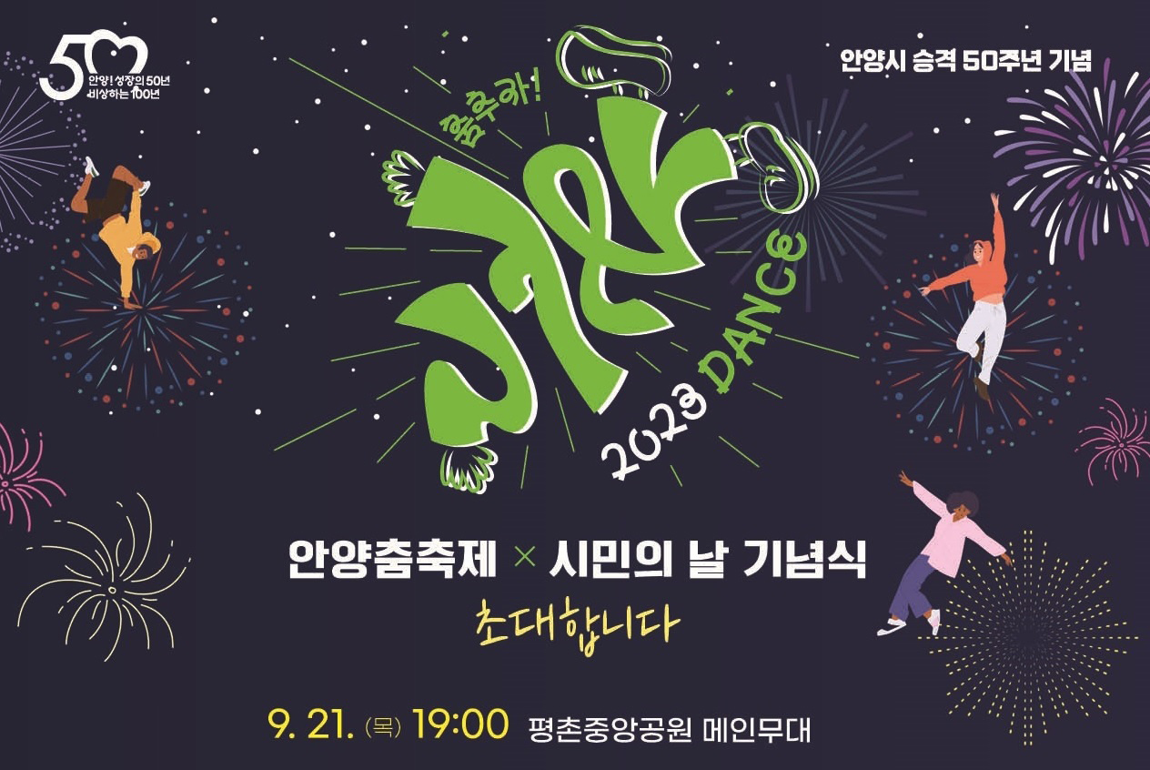 안양시 시승격 50주년과 함께 올해 22회를 맞은 안양시민축제가 명칭을 안양춤축제로 바꾸고 '걷고, 뛰고, 춤추자!'라는 주제로 9월 20일부터 24일까지 5일 동안 평촌중앙공원과 삼덕공원에서 매일 19시부터 21시까지 공연이 펼쳐진다.