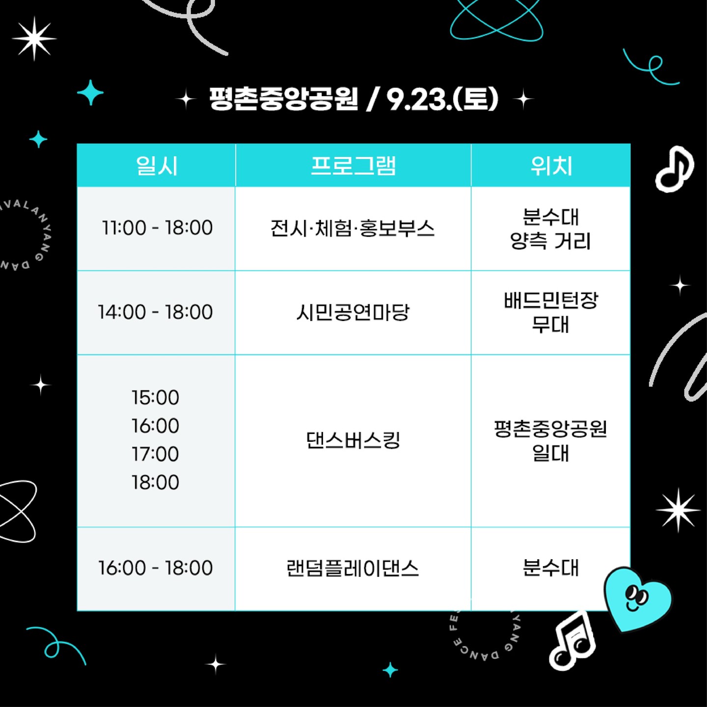 안양춤축제는 그동안 안양시민축제라는 이름으로 열리다가 춤을 주제로 한 관광형 축제로 거듭나기 위해 올해부터 '춤축제'로 명칭을 바꿨다. 더 자세한 내용은 안양춤축제 홈페이지(https://www.aydf.kr/default/) 에서 확인할 수 있다.