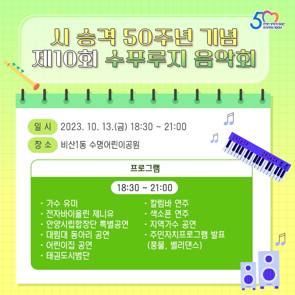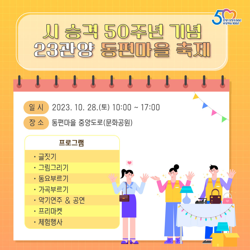 | [20231011]제10회 안양시 학생동아리축제 28일 평촌중앙공원 (0) | 2023.10.11 |