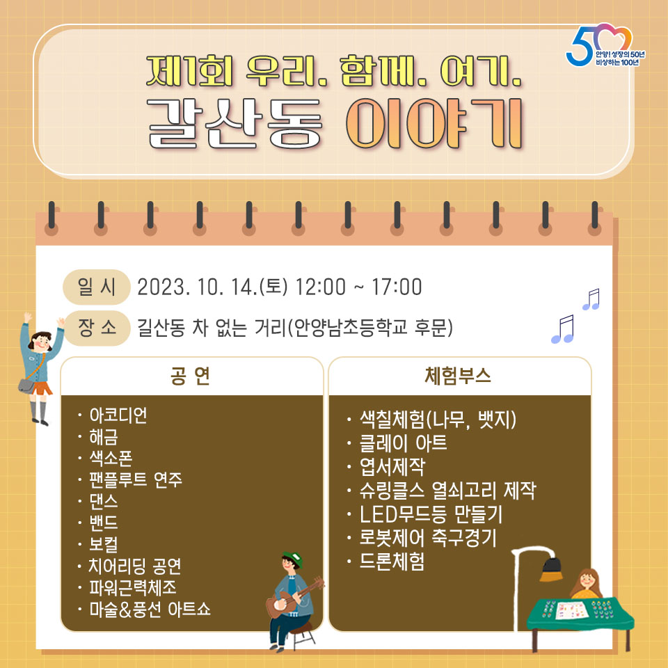 안양문화에술재단에 따르면 재단이 지원하는 <문화예술 마을축제 지원사업>이 총 14건인데 그중 6건이 10월에 진행된다.