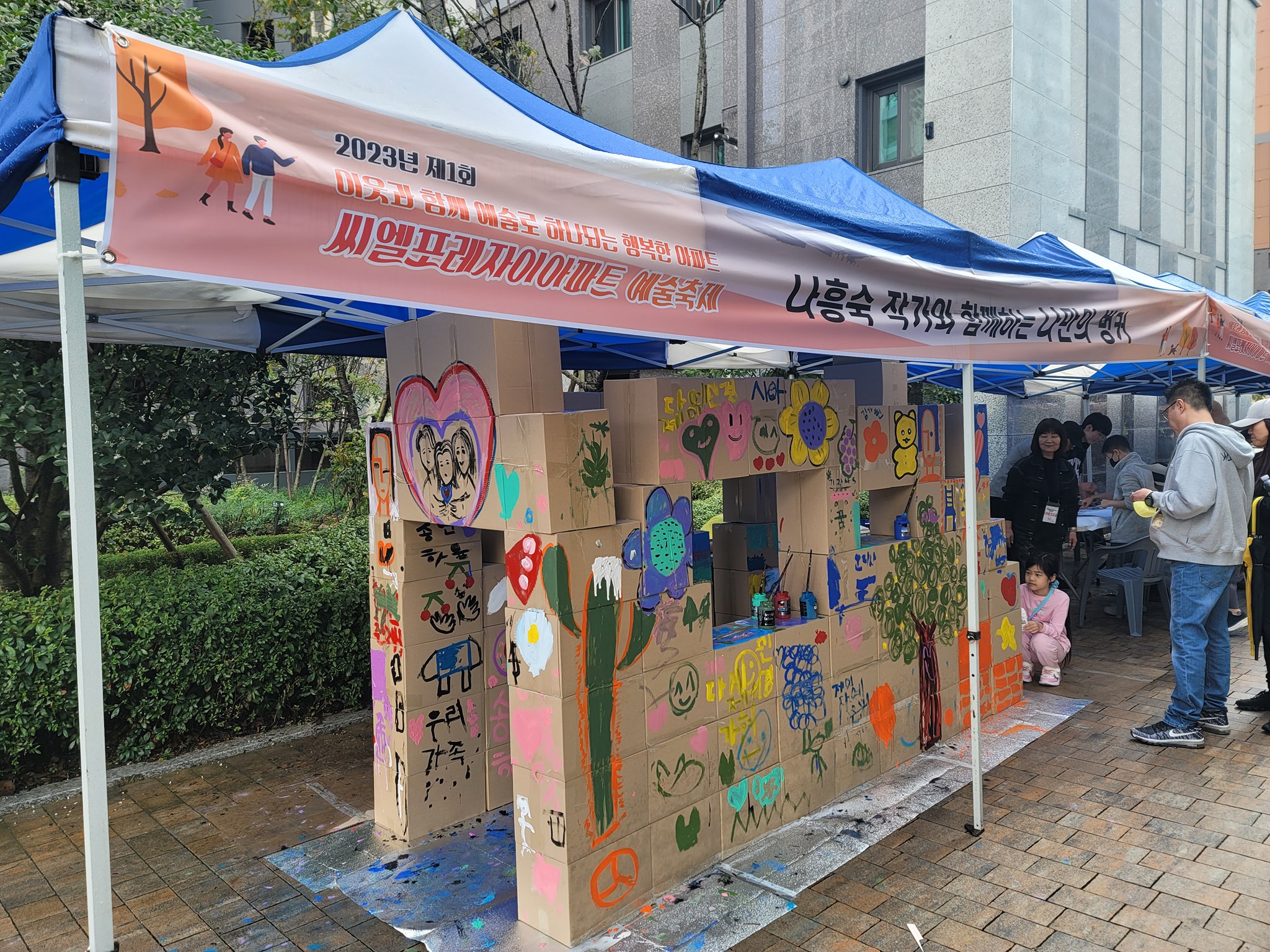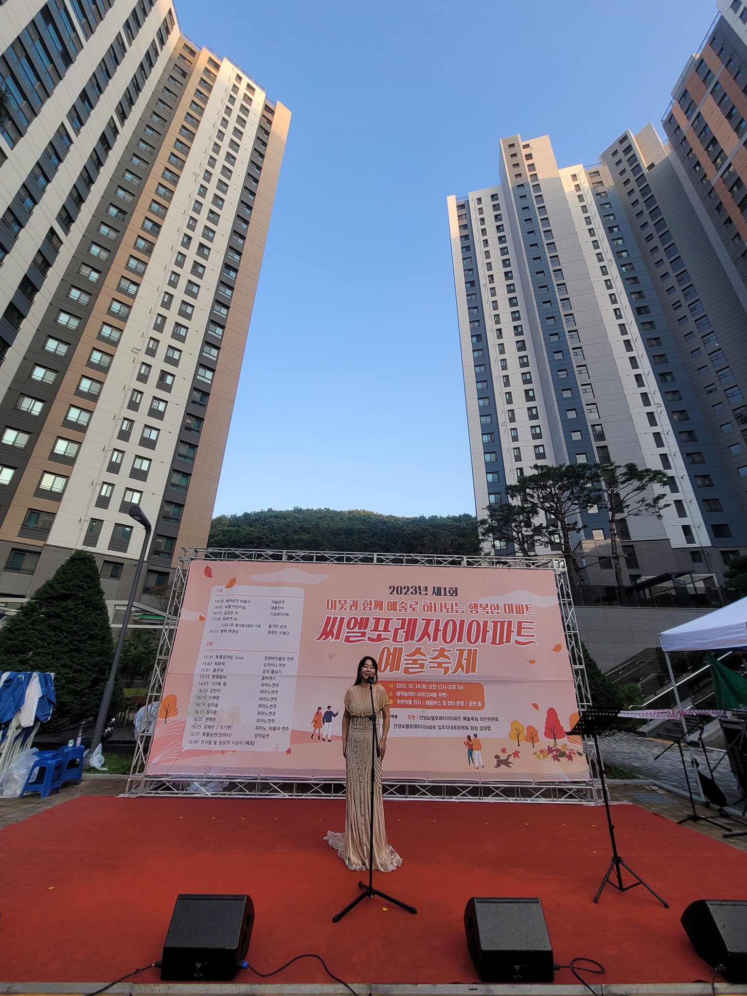 2023.10.14/ #도시기럭 #행사 #안양 #소곡마을 #씨엘포레자이 #안양6동/ 도시 재개발로 옛 마을이 흔적도 없이 사라진 소곡마을에 새롭게 들어선 대형아파트단지. 씨엘포레자이아파트에서 축제가 열렸다. 제1회 씨엘포레자이아파트 예술축제. 안양예총에서 경기도 문화의 날 공모사업을 통해 개최된 행사. 지역주민과 예술인들이 함께 준비했다고 한다. 체험, 전시, 장터 공연 등 다양한 프로그램들을 준비했는데 날이 비가 오고 우중충했던 궂은날씨 다행히 반짝 비가 그치면서 행사가 가능해졌다. 사진 제공: 장지섭(안양문인협회 사무국장). 정창근 미술작가.