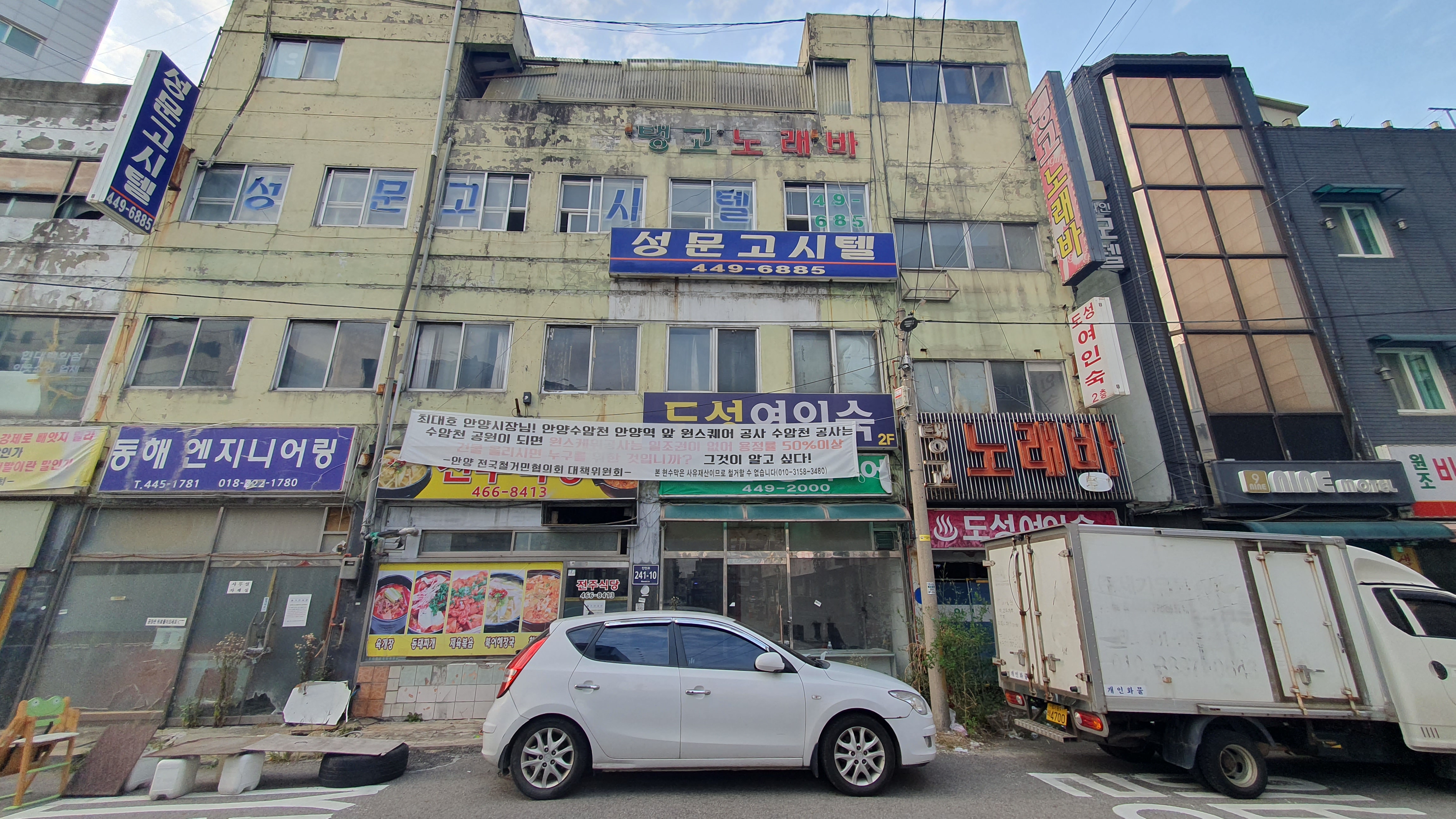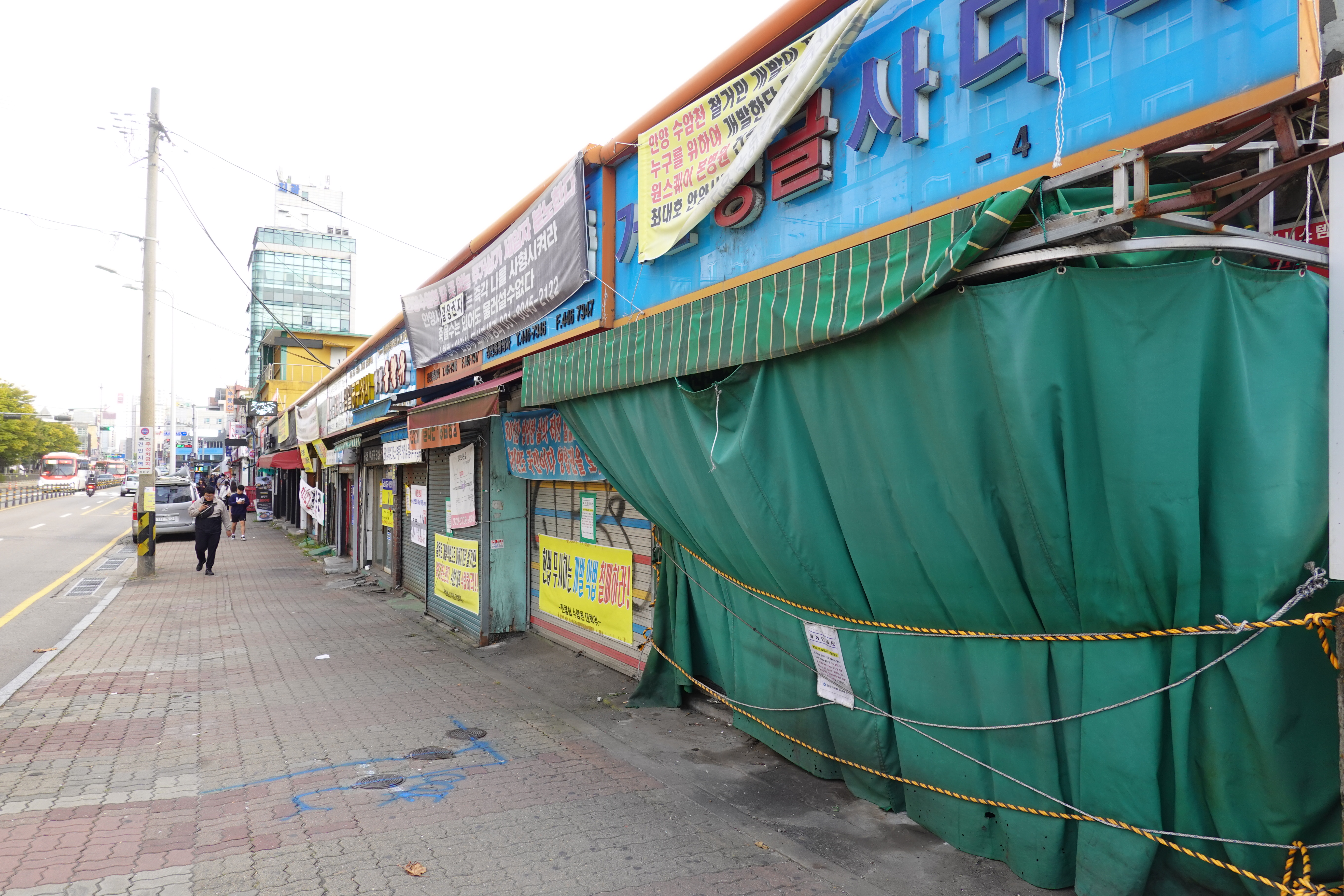 2023.10.18/ #도시기록 #안양 #안양역공구상가 #강제수용 #반발/ 수암천 지하저류조 조성으로 건물과 토지에 대한 강제수용으로 반발과 아룸과 진통이 있는 안양역앞 공구상가의 모습.