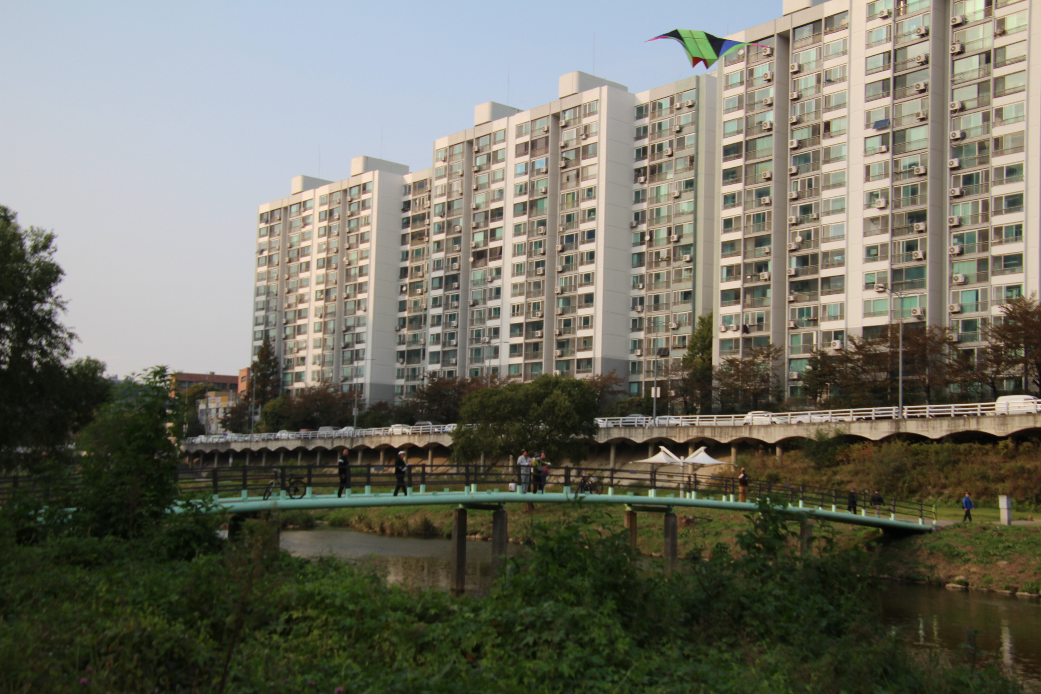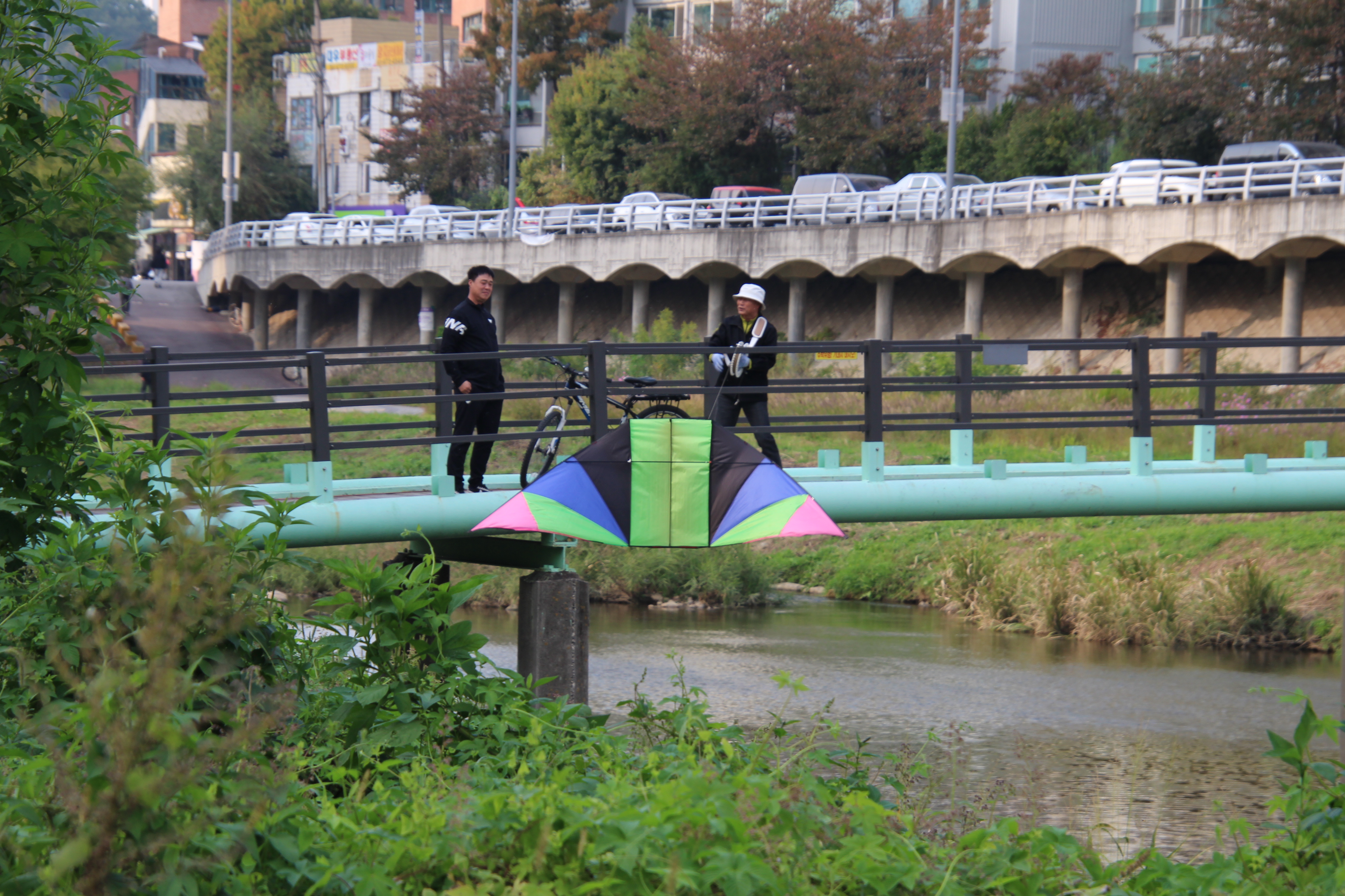 2023.10.18/ #도시기록 #안양천 #놀이터 #연날리기 #안일초교세월교/ 안양천 안일초교앞 세월교 다리는 연날리기 명소. 자고로 하천은 물길이자 바람길이라 했던가, 안양천을 따라 부는 바람이 연날리기에는 금상첨화로 그야말로 연날리기 최족의 장소다.