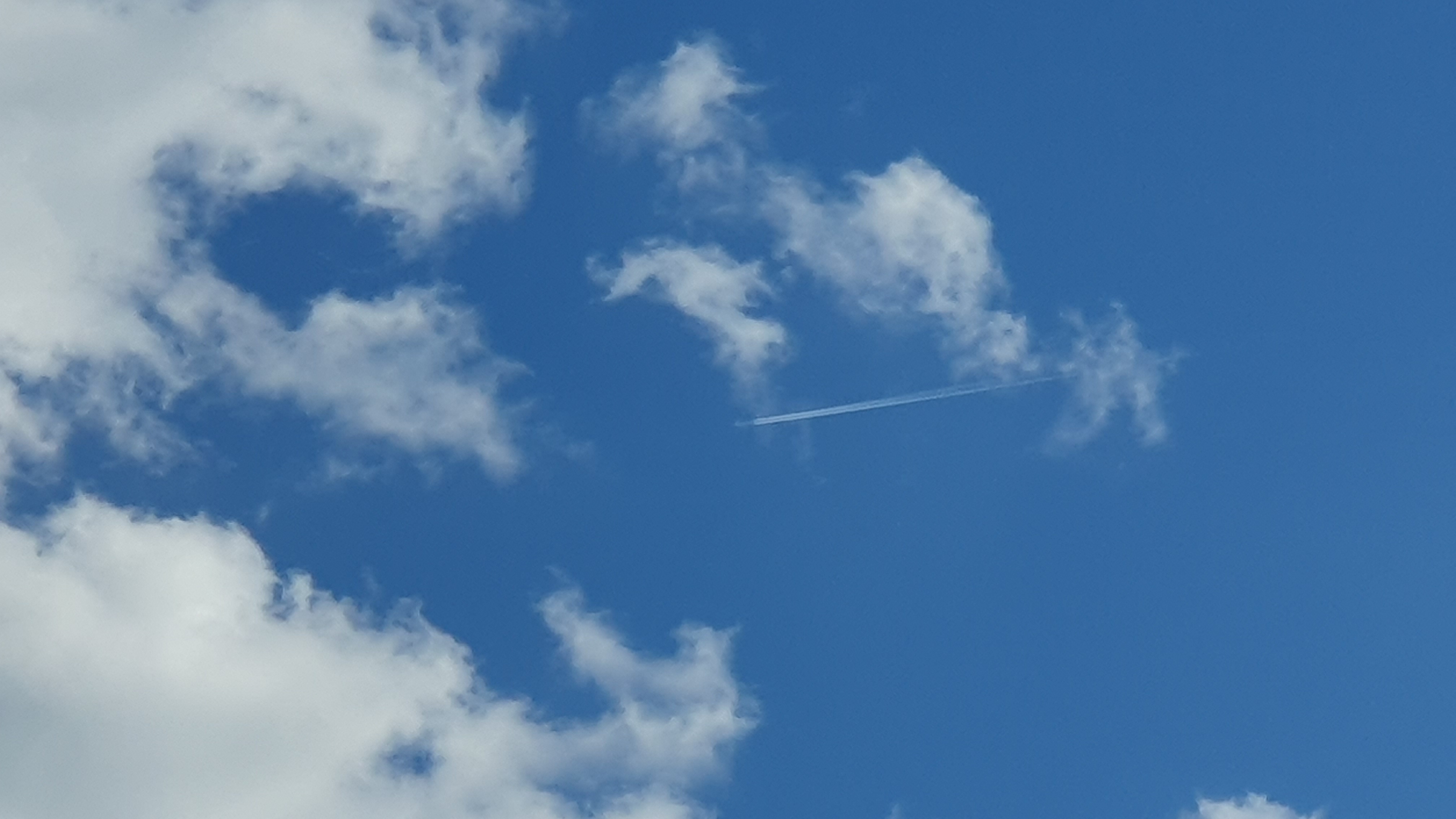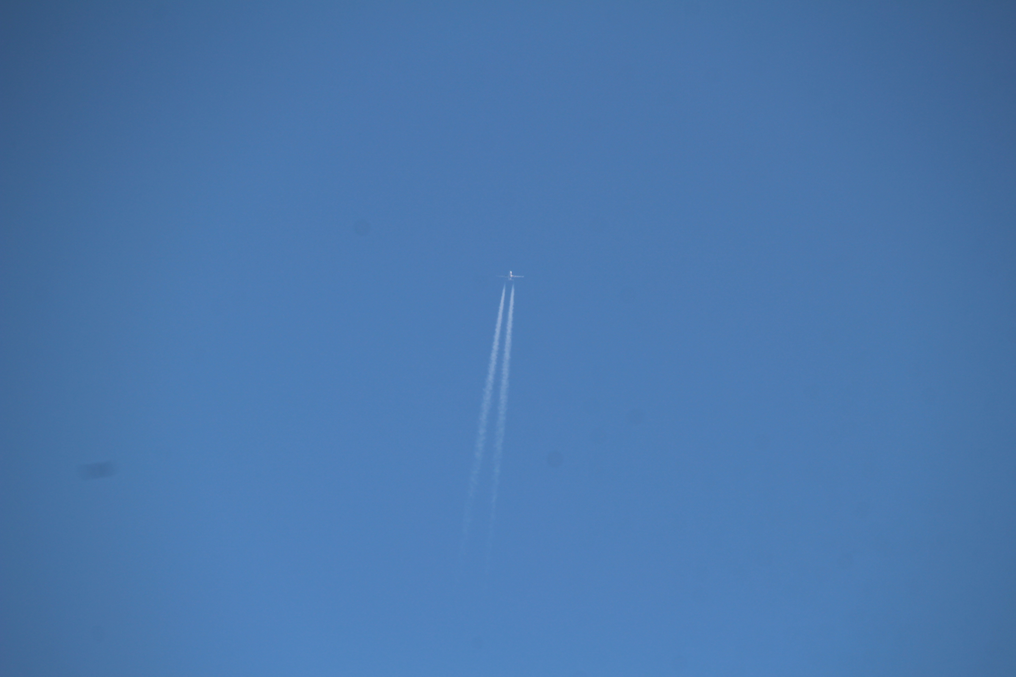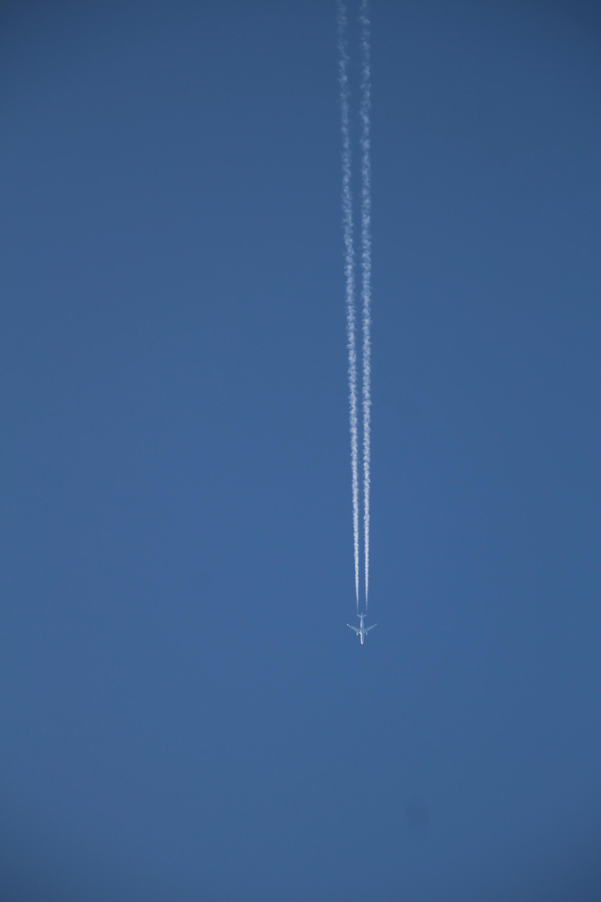 2023.10.21/#도시기록/ #도시기록 #비행기 #고공 #비행운/ 하얀 분필로 선을 듯 높은 하늘을 날아가는 비행기들. 고도를 블때 한반도를 통과하는 외국 비행기인듯. 안양 하늘은 수많은 비행기들이 지나다니는 비행기길(항로)이다.