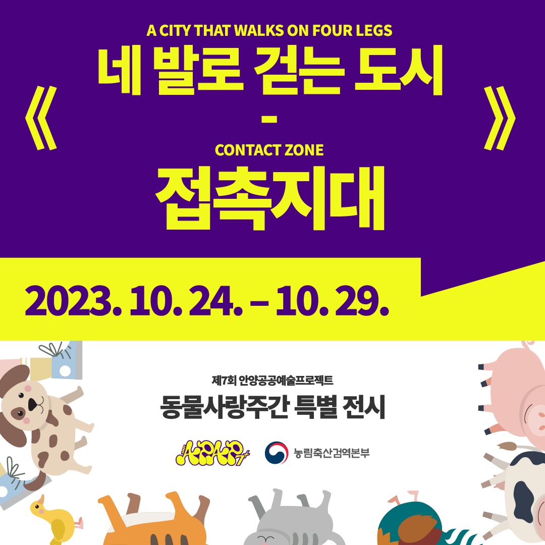 ‘네 발로 걷는 도시’는 ‘네 개(4개)의 발로 걷는’ 그리고 ‘네(너의) 발로 걷는’이라는 두 가지의 의미를 내포하며, ‘접촉지대 (Contact Zone)’ 는 도나 헤러웨이(Donna J. Haraway)의 『종과 종이 만날 때 When Species Meet』 에서 언급된 것으로 “서로 다른 것들이 만나서 서로가 서로에게 얽혀 들어가는 장소”를 의미한다.