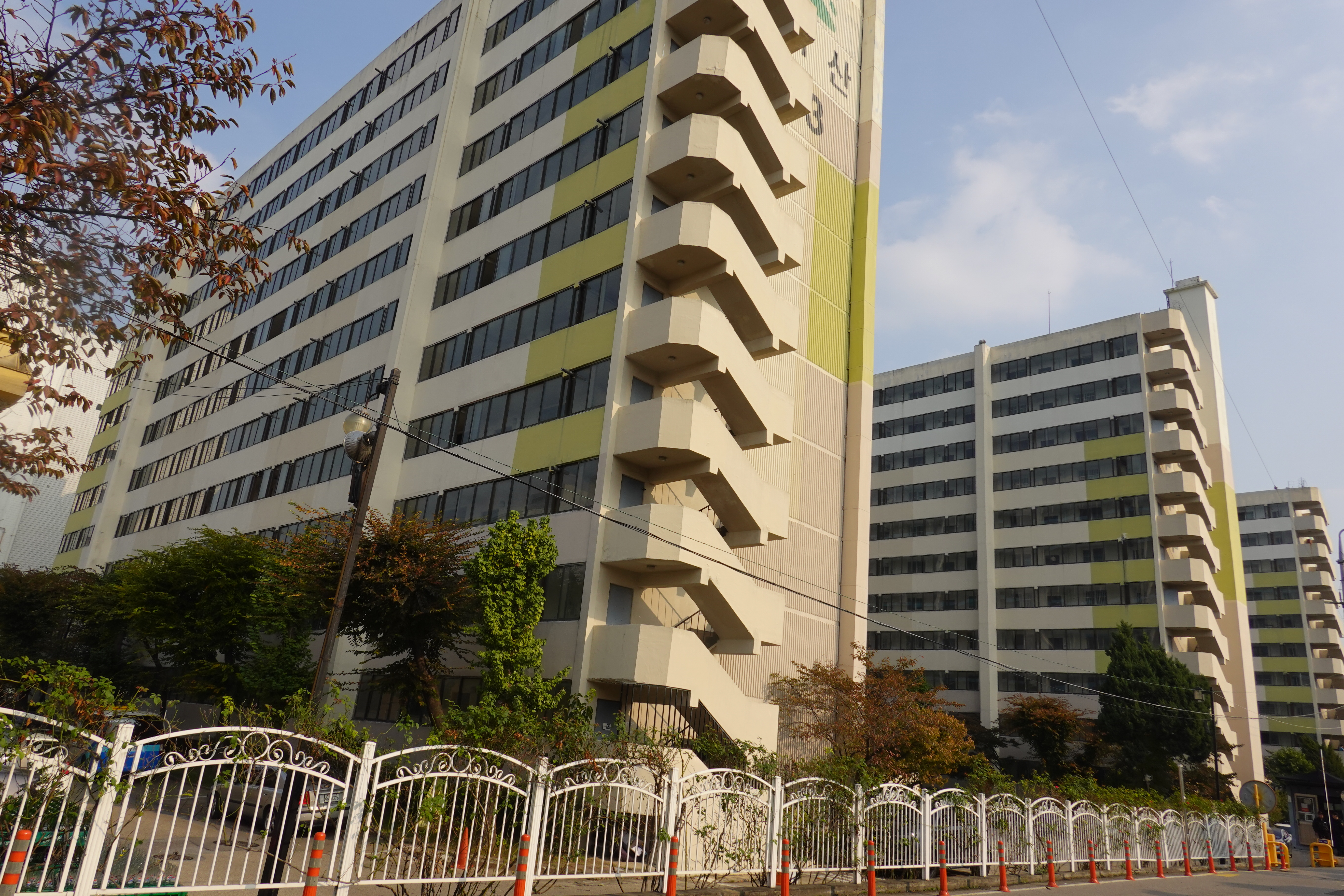 2023.10.25./ #도시기록 #안양 #벽산아파트 #벽산쇼핑 #since1985 / 과거 고려석면 공장이 있던 안양 원도심 중심자리에 1985년 9월 준공한 벽산아파트의 2023년 10월 현재 모습이다. 3개동에 총 275세대가 거주하고 있는데 현재 재건축이 추진되고 월곶-판교 전철 역세권이 되면서 노후화된 아파트 가격이 치솟고 있다고 한다, 벽산아파트 중앙로 도로변으로는 벽산쇼핑(현 2001아울렛)이 있고 서쪽으로는 중앙성당과 안양유치원이 있으며 북쪽애는 중앙시장이 있다.
