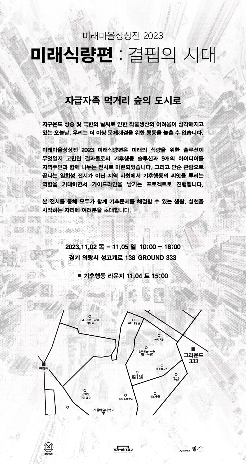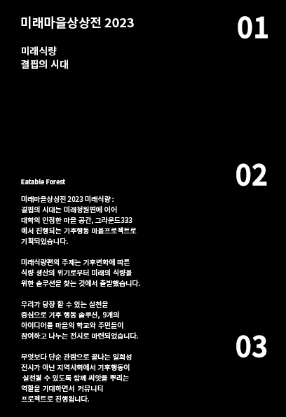 마켓발견이 있는 건물 GROUND333에서 마켓발견과 협력으로 친환경 전시 2023 미래마을 상상전 : 미래식량편