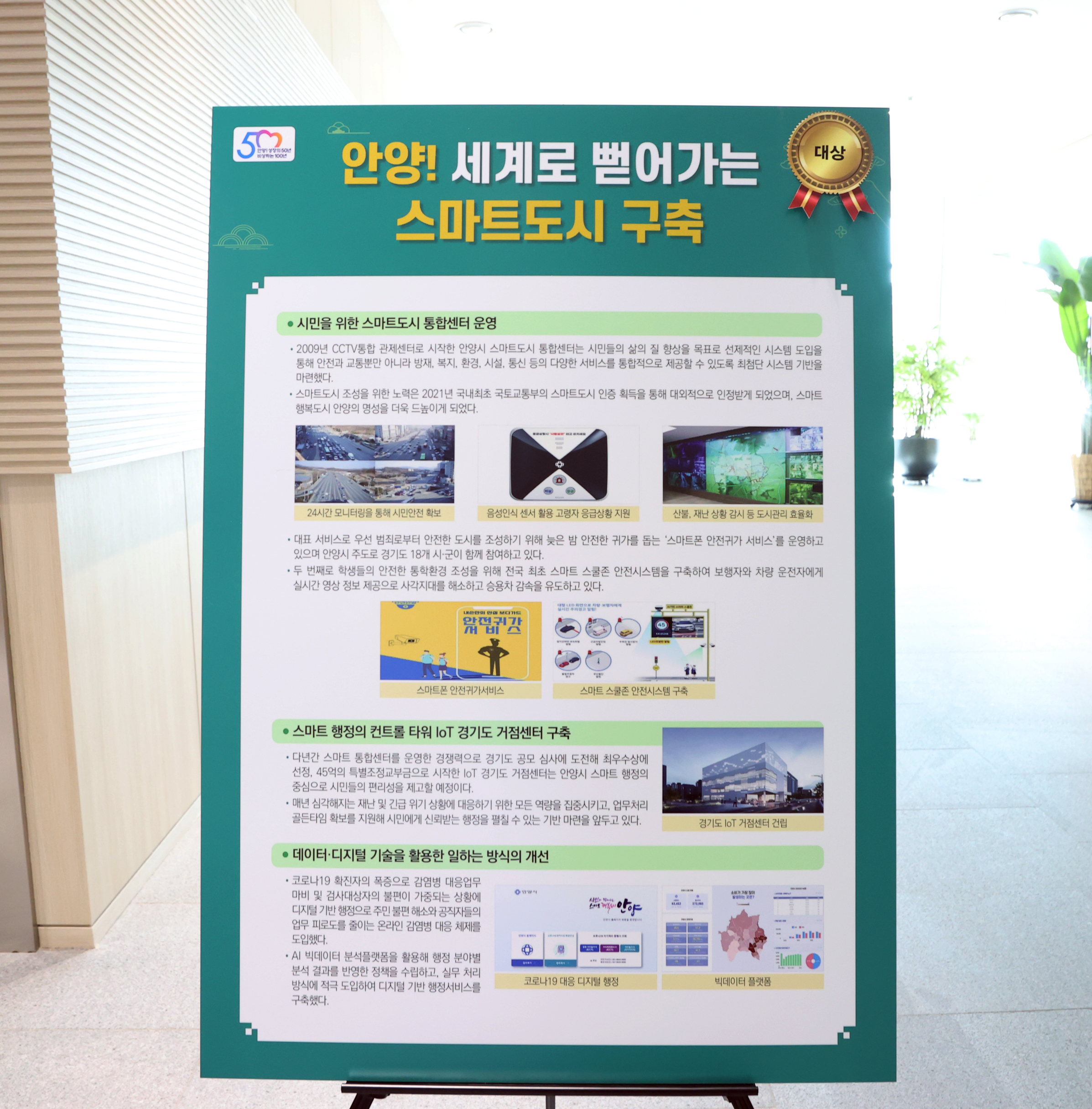 행안부는 “안양시는 스마트도시통합센터를 통해 안전·교통·복지·문화 등 다양한 행정서비스를 제공해 최첨단 지방행정시스템 기반을 구축하는 등 스마트 도시 조성에 오랜기간 공을 들여왔다”고 평가했다.