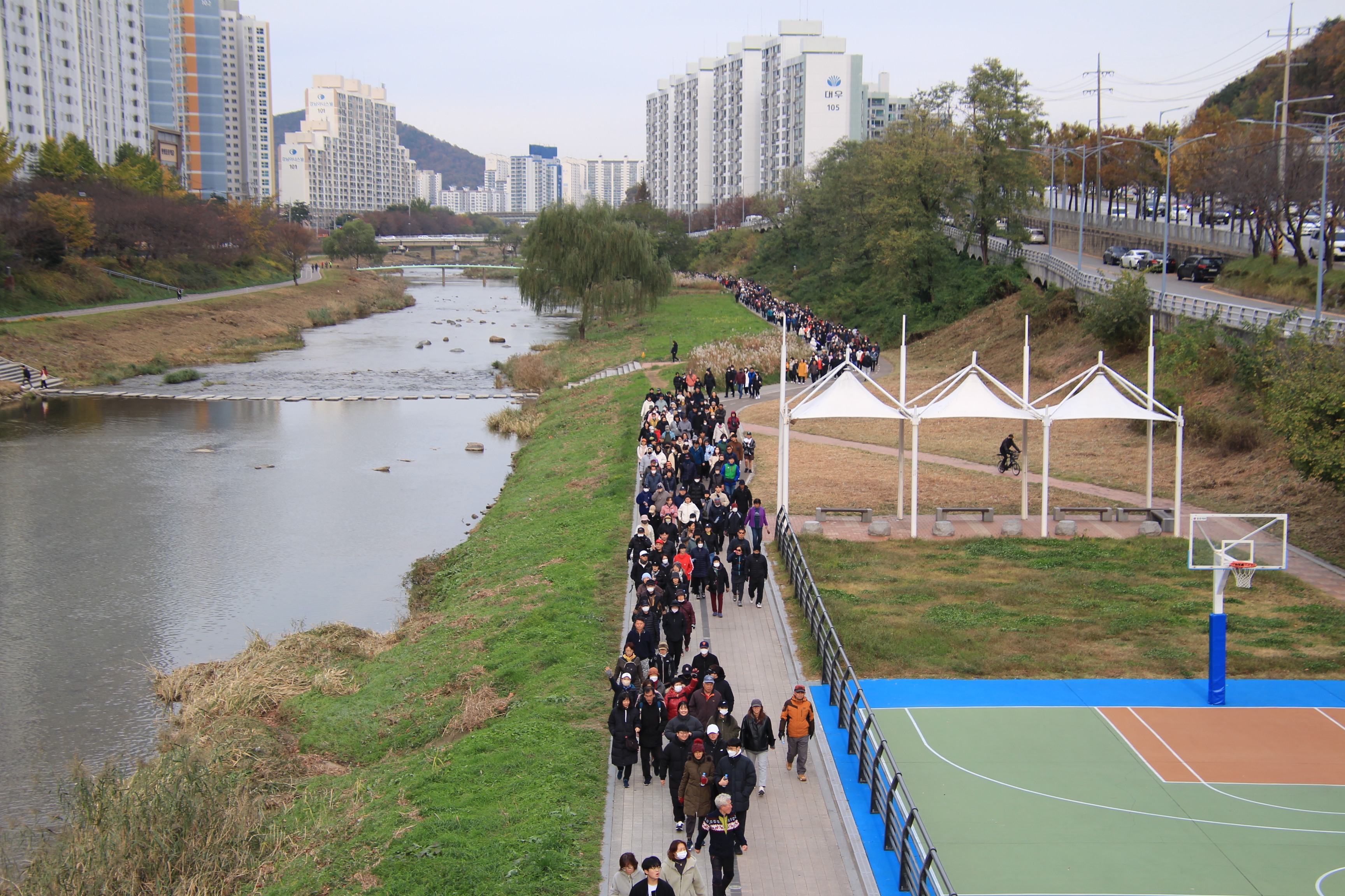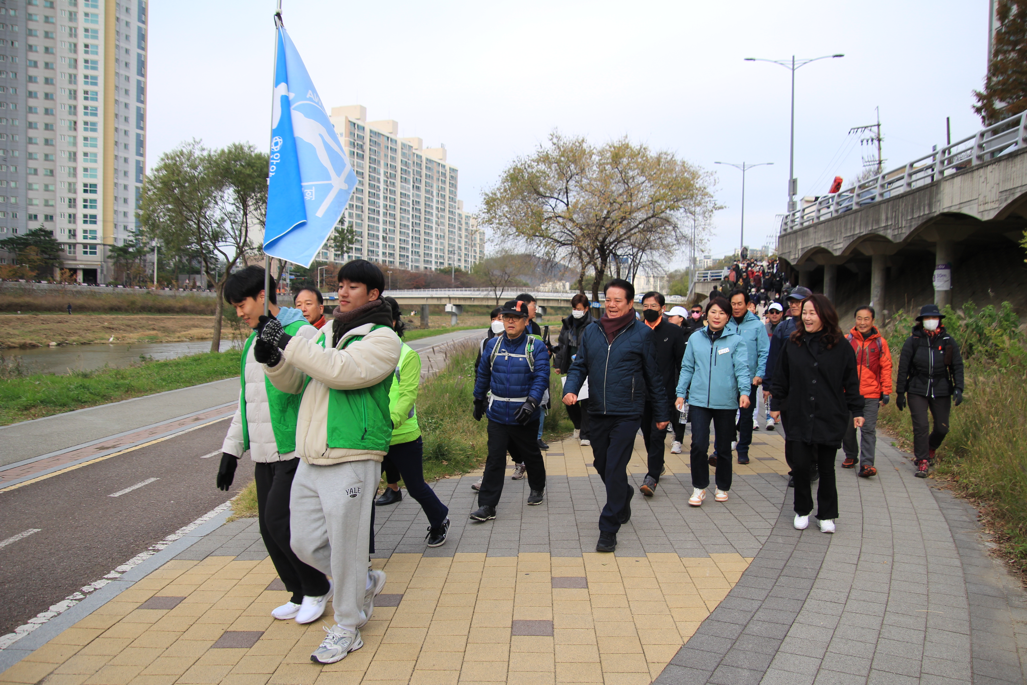 안양시체육회가 주최하고 안양시걷기협회가 주관한 이날 행복걷기대회는 안양2동 양명여고 운동장을 출발해 비산대교를 지나 세월교를 반환점으로 되돌아오는 약 3.5㎞ 코스로 약 1시간이 소요됐다.