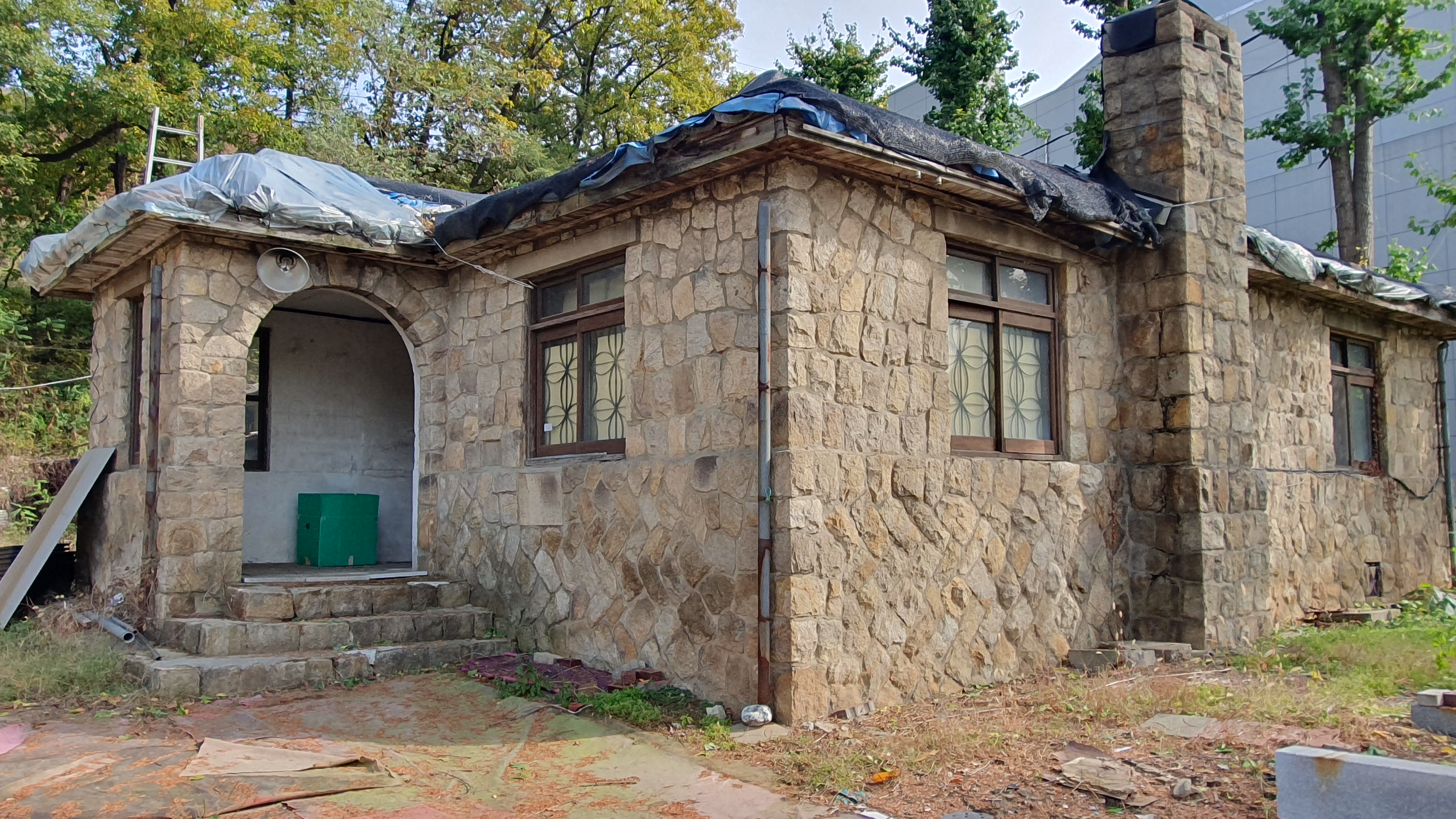 2023.11.11/ #도시기록 #석조병원 #안양 #양명고 #근대문화/ 안양2동 양명고교 경내 북쪽에 자리한 석조건물. 지금은 양명고 경내에 있지만 과거 안양기독보육원(현 좋은집) 경내였다. 이 건물은 한국전쟁 직후 주한미군이 병원 용도로 지어준 건물로 양명고 설립이후 오랜기간 학교 소사가 거주하며 책걸상 등 학교 비품을 수리하고 자재를 보관하는 창고로 사용해 왔는데 최근 건물안을 싹 비웠다. 어떤 용도로 사용하려는 걸까.